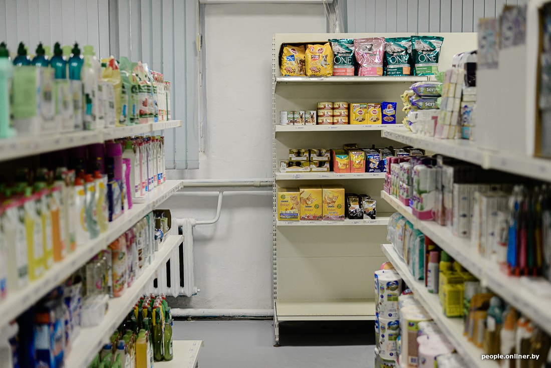 В комнате лежит около тысячи SKU (единиц разных товаров). По оценкам организаторов магазина, это все, что может понадобиться нуждающемуся покупателю.
