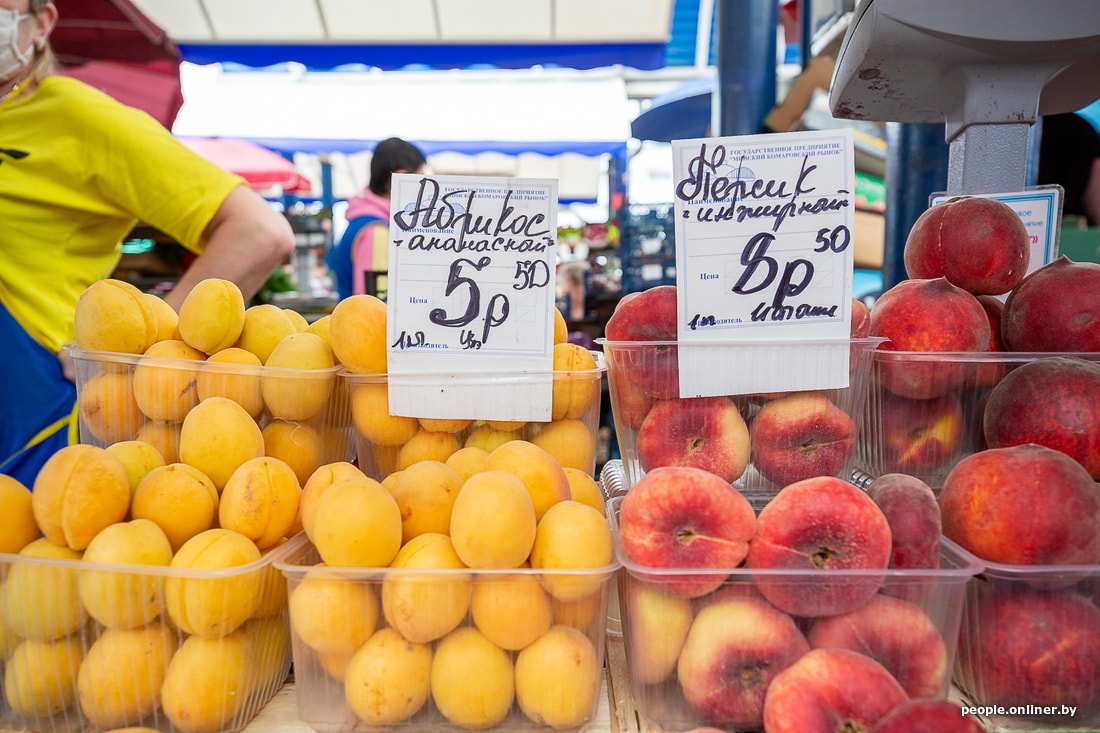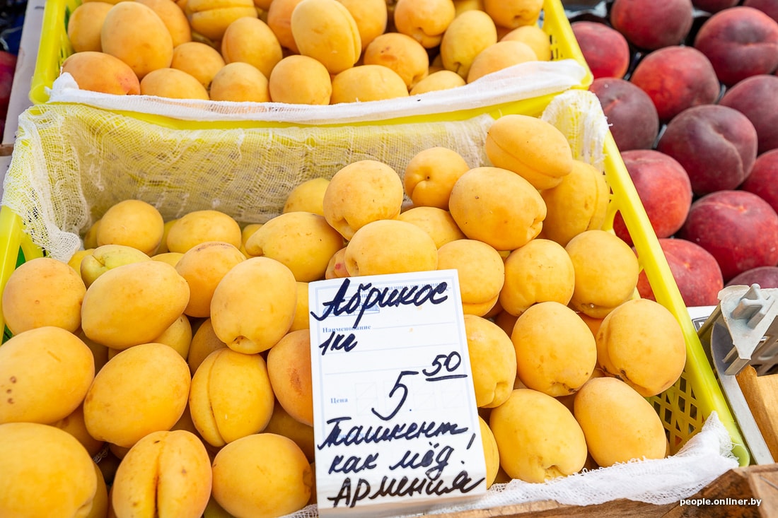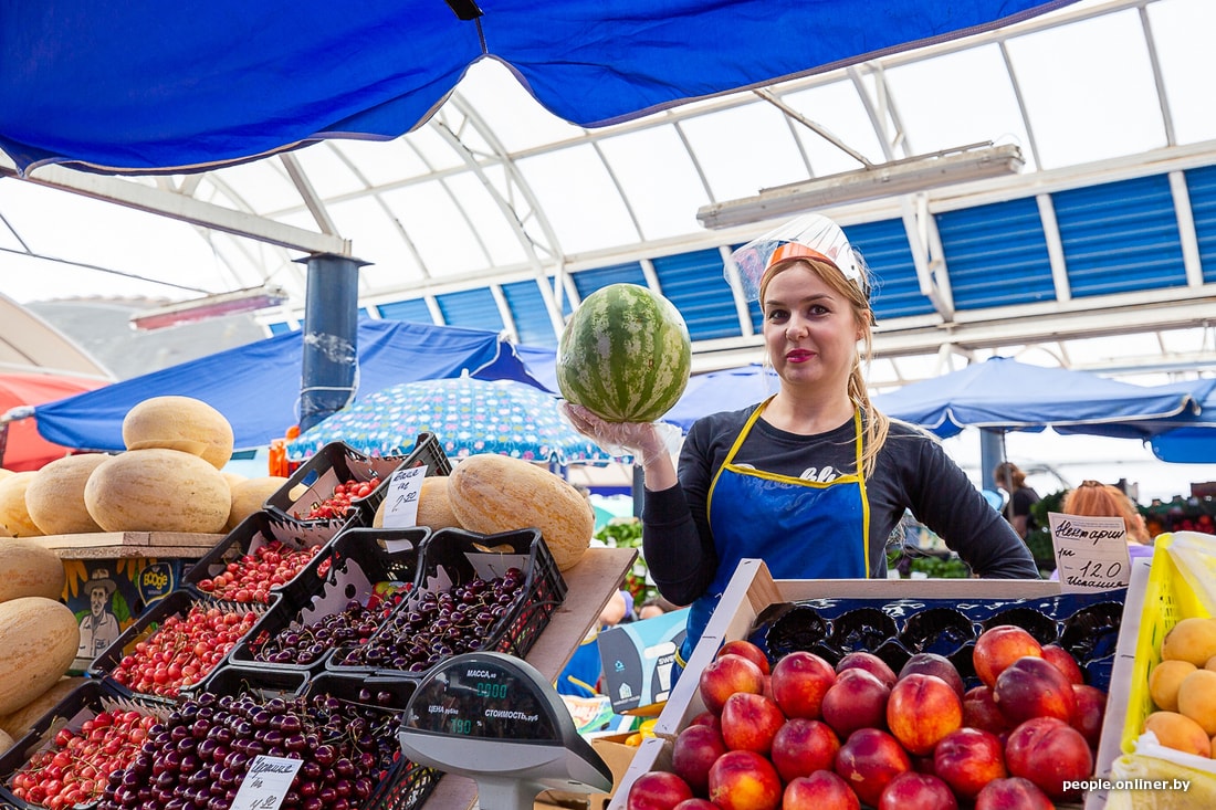 Субботним утром мы выбрались с фотоаппаратом на Комаровский рынок и запечатлели ценники на свежие фрукты да овощи. Сезон черешни уже потихоньку проходит, а вот арбузы набирают обороты — сейчас они далеко не размером с мотоциклетный шлем, как были в начале июня.