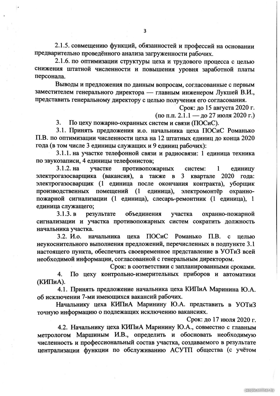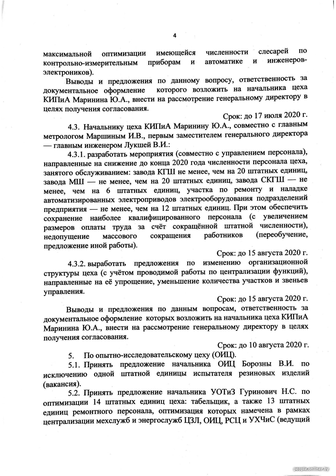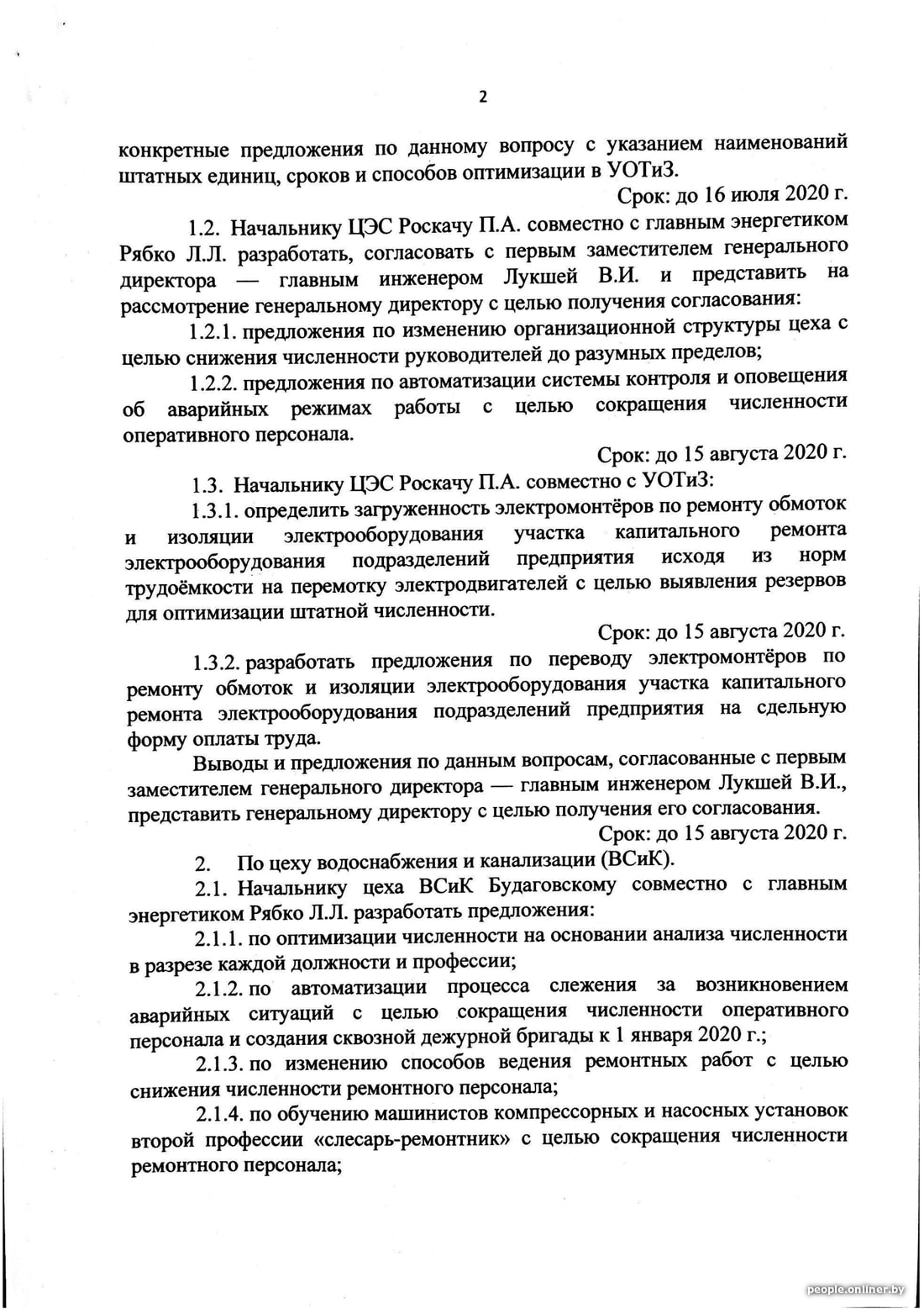 Задачи сформулированы логичные: укрупнение секторов, совмещение профессий, повышение управляемости при «недопущении увеличения уровней управления», исключение дублирования функций, избавление от лишних сотрудников. Таковыми оказываются как раз производственники, не конторские должности: энергетики, инженеры, слесари, лаборанты, электрики, ремонтники... Идеологический отдел в этом перечне не значится. Назначены сроки — что-то может произойти уже в августе, что-то надо сделать до конца года.
