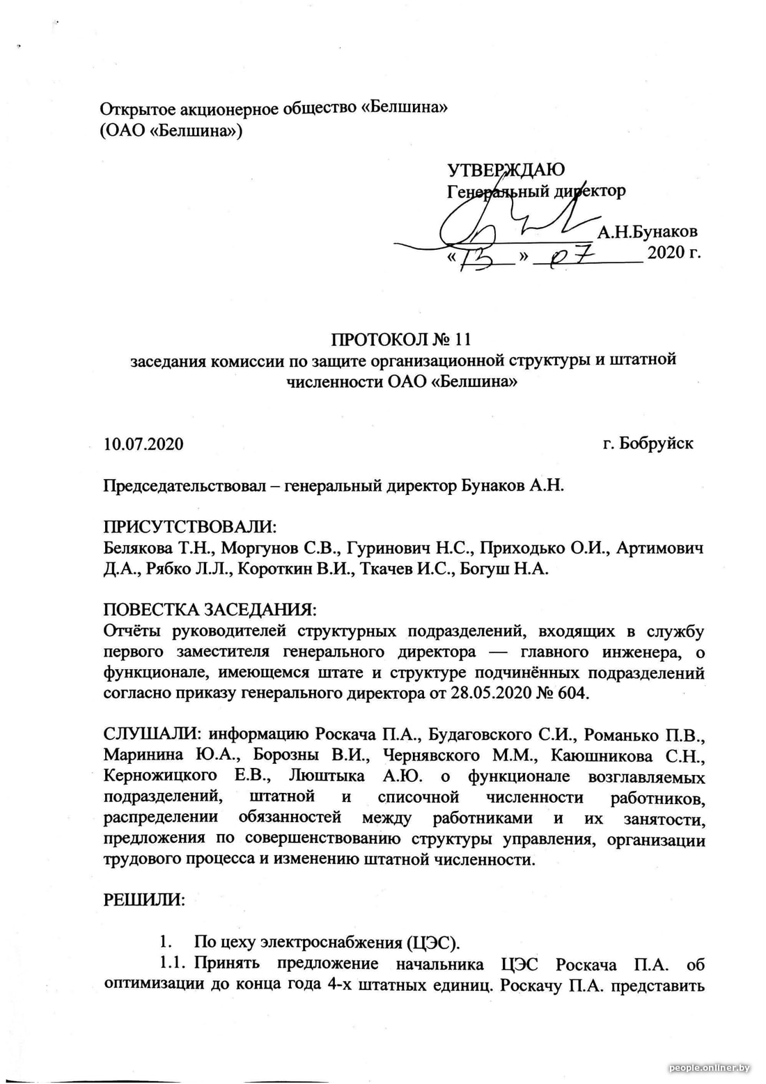 Из текста следует, что в важнейшем заседании, которое состоялось 10 июля, участвовал генеральный директор ОАО, его заместители, руководители подразделений. Повестка: отчеты о функционале, штате и структуре.