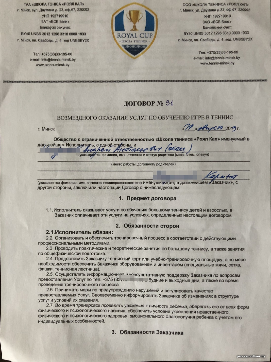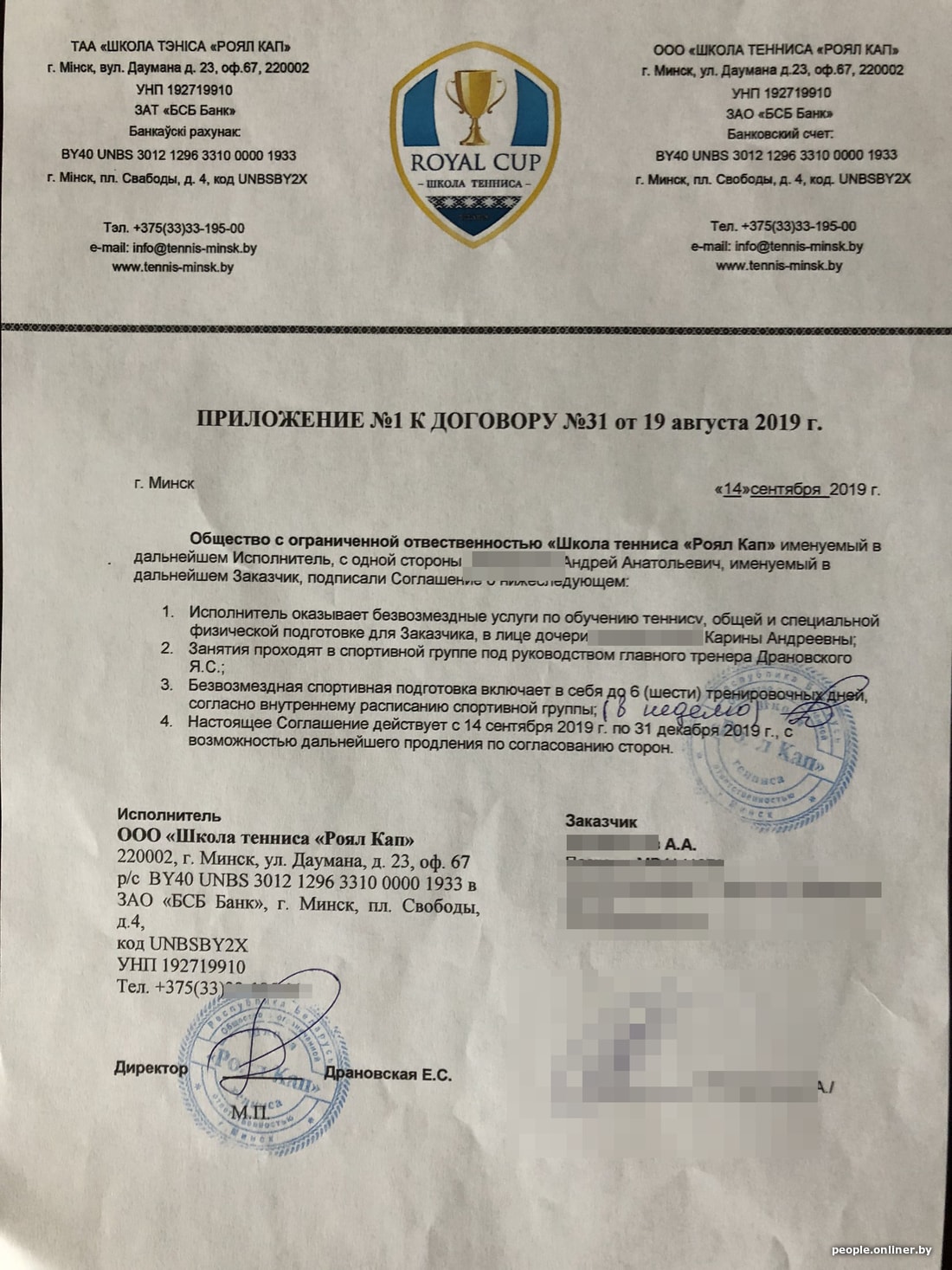 — Моя дочка занимается бадминтоном, захотела попробовать себя в теннисе. Мы погуглили корты на улице Даумана (спорткомплекс «Динамо») — показывает школу Royal Cup, в прошлом году они там были на аренде. Почитал в интернете: директор медийный, чемпионаты проводит известные. Бесплатное пробное занятие прошло в августе прошлого года, тренерами были нанятые девочки. Стоила школа 200 рублей в месяц при двух занятиях в неделю.