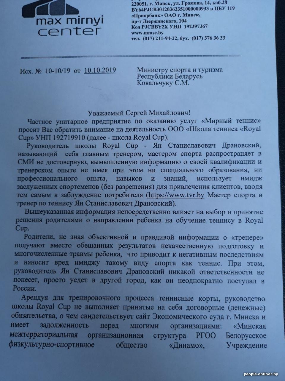 — Что я знаю? Драновский появился из ниоткуда. Ходил по теннисным кортам и брал уроки как обычное физлицо. Через какое-то время он появился как мастер спорта и организатор школы. Мы приветствуем все новое — появился и ради бога.