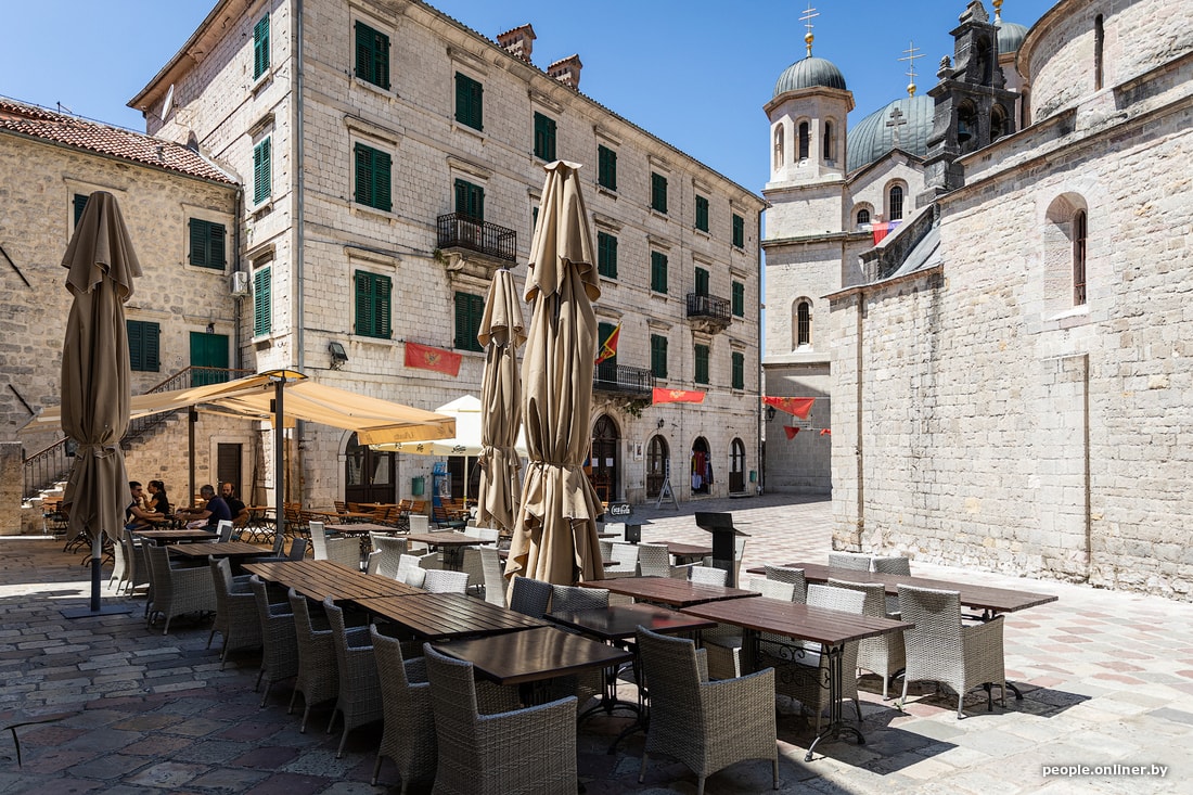 Чтобы реально оценить здешнее опустение, надо побывать в Которе, городке, который привлекает туристов своим Старым городом и расположенной на высоте тысячи с чем-то ступеней крепостью. Можете устроить испытание своим легким за €8. Так вот в Которе в середине дня можно фотографировать натуральную пустоту. Изредка в глаза бросаются коты, которые греются на солнце, ну и официанты, которые занимают столики своих же заведений и подобно котам тоже греются на солнце.