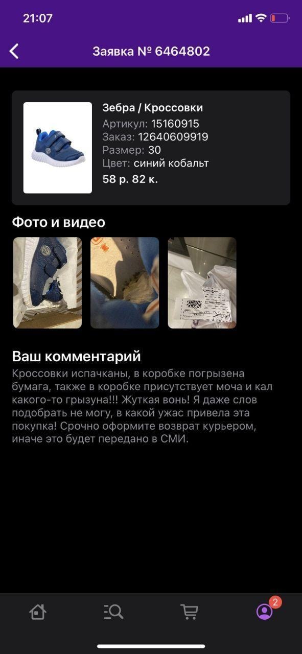 — Напрямую оперативно с Wildberries невозможно связаться по телефону, только заявка на возврат, чат-боты и мессенджеры. Нам с этой фигней в коробке жить, пока не заберут. Потому что на рассмотрение заявки — 5 дней! А если в ней еще сидела какая-то живность? — злится покупатель.