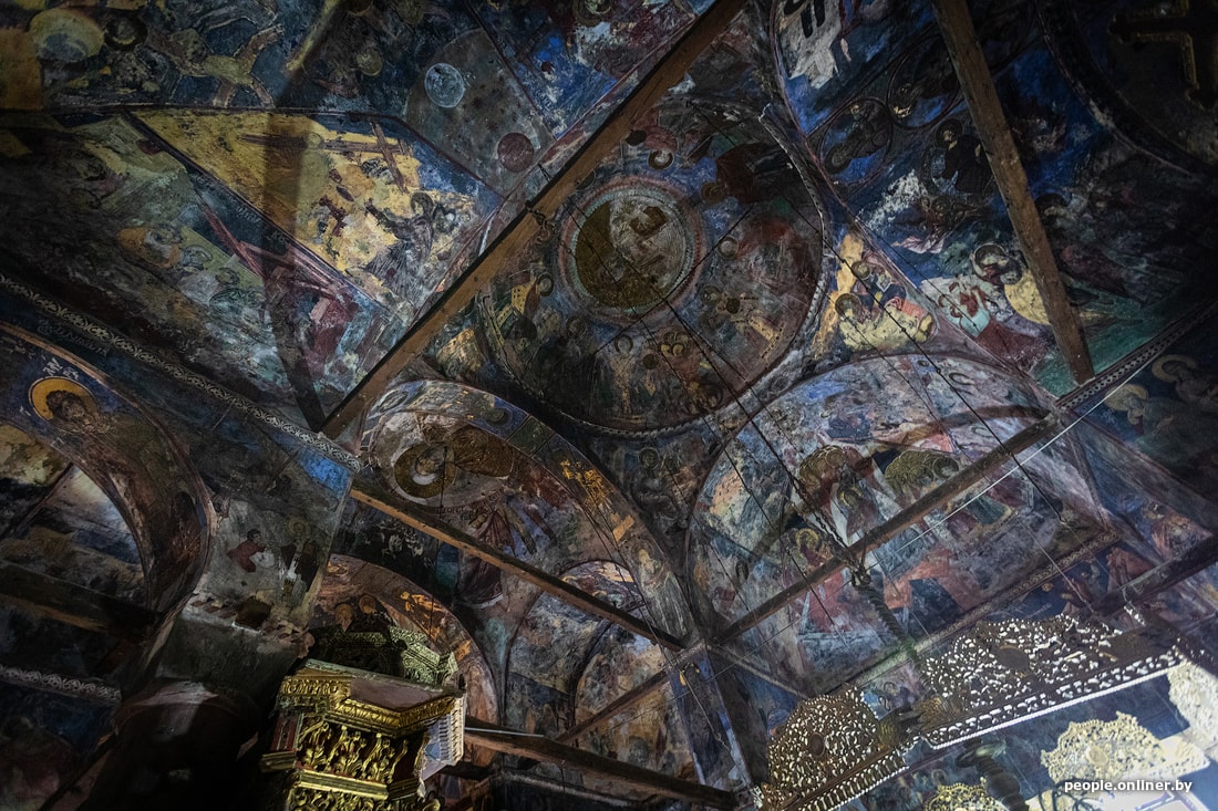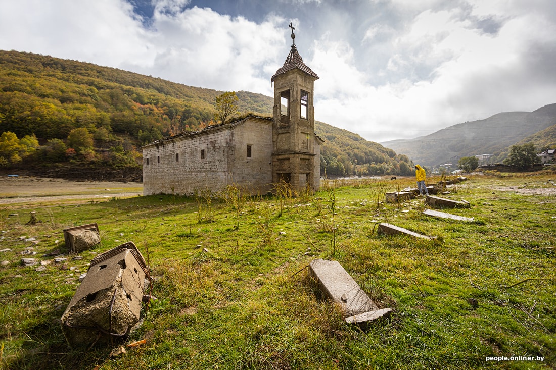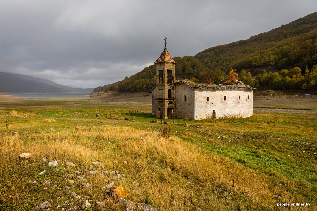 Кстати, более-менее все церкви близ воды посвящены святому Николаю. На берегу построена новая, одноименная. Если экскурсовод будет настаивать на ее посещении, смело саботируйте и дуйте в самоволку смотреть на развалины старой. Да, зимой она, скорее всего, будет по горлышко в воде. Но летом-осенью доступ открыт — и людям, и коням, и коровам, которые в сочетании с кинематографичным дождем делают глазу очень приятно.