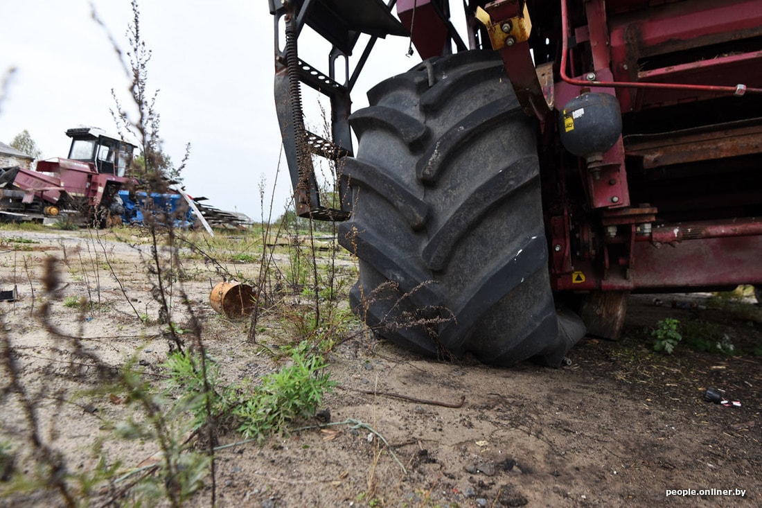 С комбайна сняли все, что смогли увезти. Теперь это гордый памятник на пеньках.