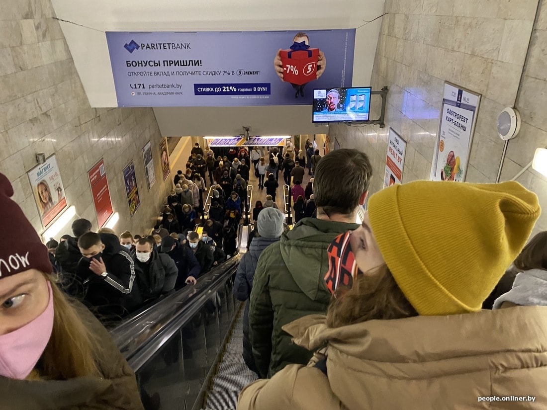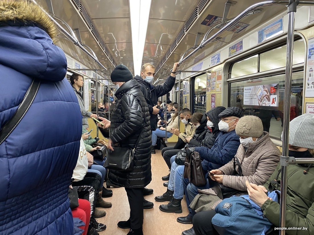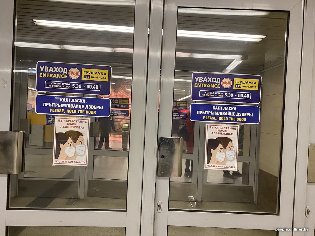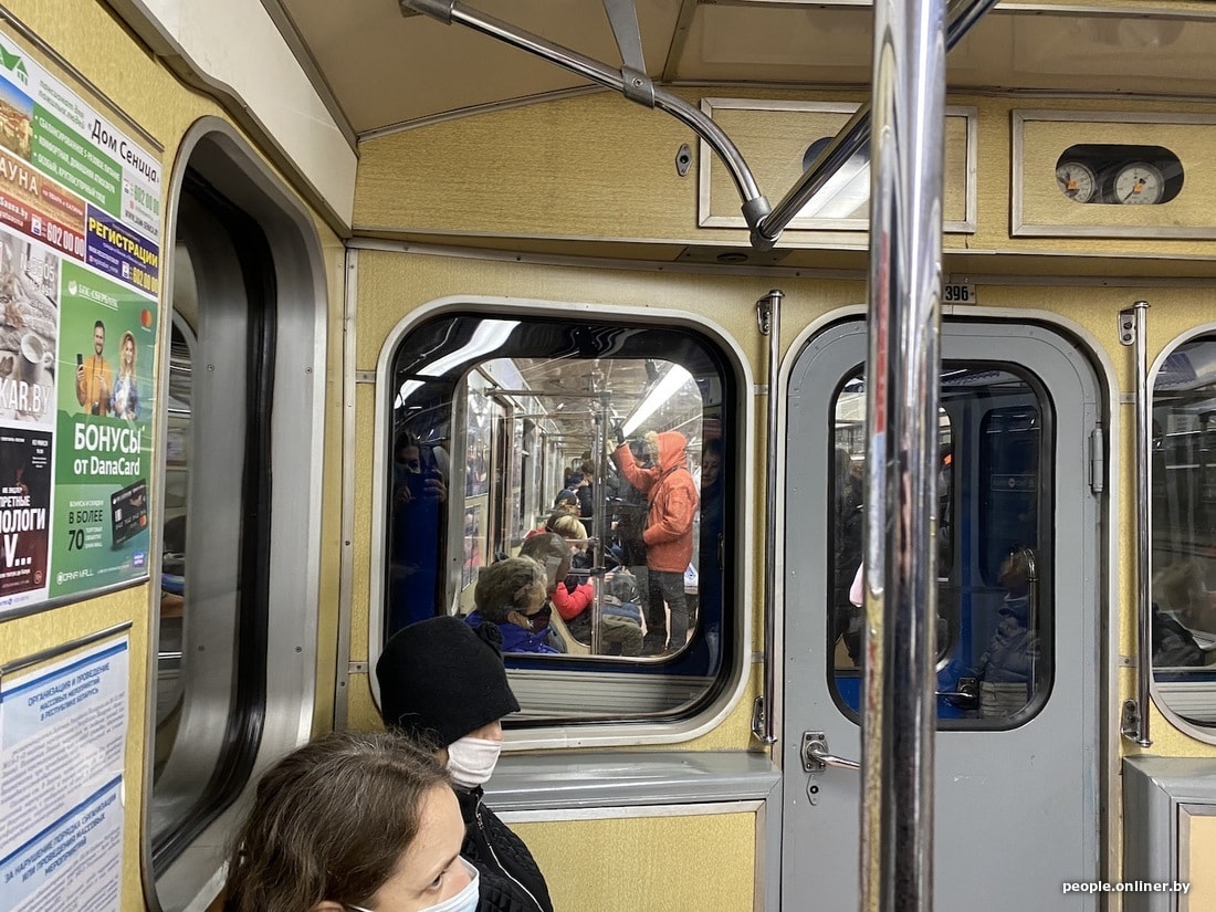«Уважаемые пассажиры, на основании решения Мингорисполкома на объектах метрополитена введен обязательный масочный режим. Берегите себя!» — говорит голос диктора в вагонах.