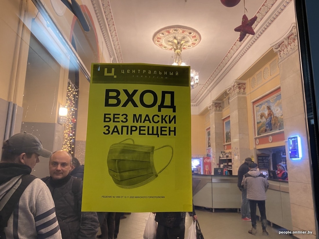 Если в начале года маски на лицах людей повергали нас в ужас, то весной они стали нормой и даже модной тенденцией. Сначала белорусы сметали их с прилавков аптек и даже вызвали дефицит, но торговля быстро подхватила тренд и дала людям размахнуться: выбирай цвет, фасон и материал. К лету граждане расслабились, но потом среди специалистов пошли разговоры о второй волне. Беларусь она захлестнула пуще прежнего. Первым в стране обязательное ношение масок ввел Могилев, за ним последовали и остальные — теперь вся страна должна носить маски в магазинах и кафе, автобусах и такси, а также других общественных местах. На дверях практически всех заведений крупным шрифтом написано, что вход без маски запрещен. Кроме того, продавцы, кассиры и другие работники таких мест должны отказать в обслуживании пришедшему без защиты на лице. Но на деле все иначе.