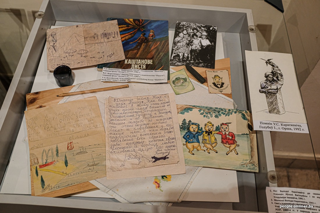 — У Караткевічаў было трое дзяцей — Валодзя быў самым маленькім. Цікава, што ўсе дзеці нарадзіліся ў лістападзе. І, як згадвала сястра Уладзіміра Сямёнавіча, бацькі абіралі адзін дзень, калі спраўлялі ўсе дні нараджэння. Маці Караткевіча сама займалася выхаваннем дзяцей, вучыла іх чытаць, пісаць, маляваць і слухаць музыку. Дарэчы, да нашых дзён захаваліся і малюначкі маленькага Валодзі.