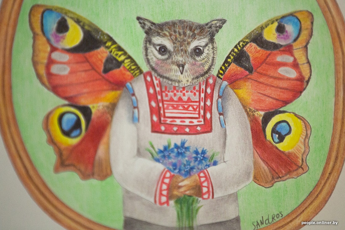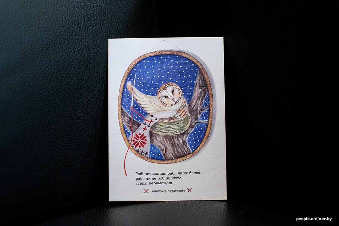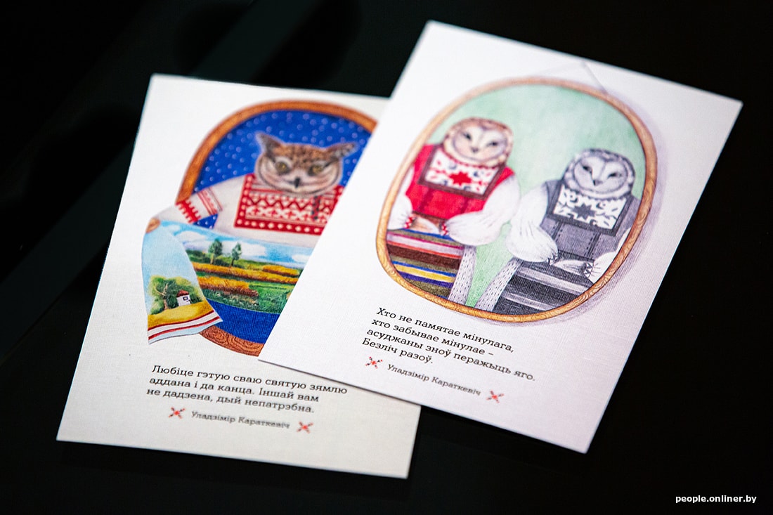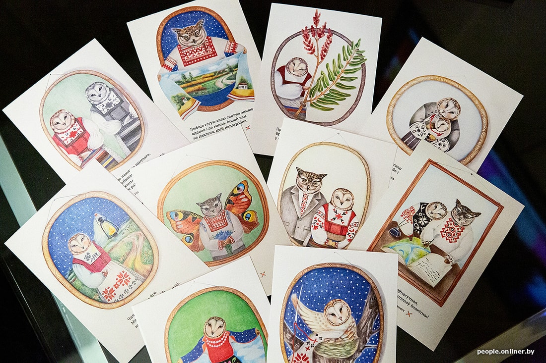 — Я перачытала «Дзікае паляванне караля Стаха». Гэта адзін з маіх самых улюбёных твораў, які пужае і заварожвае з дзяцінства, — патлумачыла мастачка Ніка Сандрас. — Я пераглядала фільм, таксама чытала кавалкамі і іншыя розныя яго творы, каб пагрузіцца ў атмасферу. Хацелася б, каб паштоўкі не выглядалі сучаснымі, каб яны былі цёплымі і лямпавымі, быццам бы персанажы выглядваюць на нас са старых фотаздымкаў. Чаму менавіта совы, не ведаю, нарадзіўся вобраз выпадкова, а пасля ад яго пайшла і ўся серыя. Мне падаецца, ва ўсіх беларусаў совы выклікаюць пазітыўныя эмоцыі.