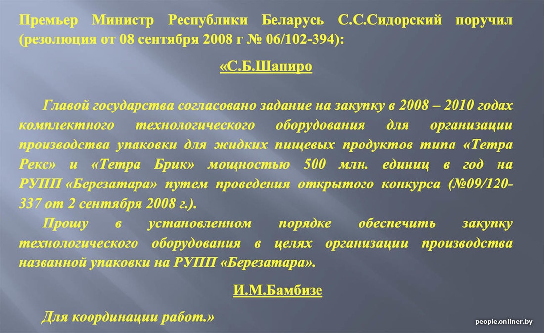 Tetra Pak тоже не сидел на месте и смотрел ревностно. Даже хотел судиться из-за того, что в контракте было написано «типа тетрапак». Я думаю, они были сами не прочь выкупить этот проект и дальше действовать по своему усмотрению: или запустить, или не запускать, потому что у них в России мощностей хватало. Но белорусские чиновники отнеслись к ним без уважения, поэтому компания отошла в сторону.