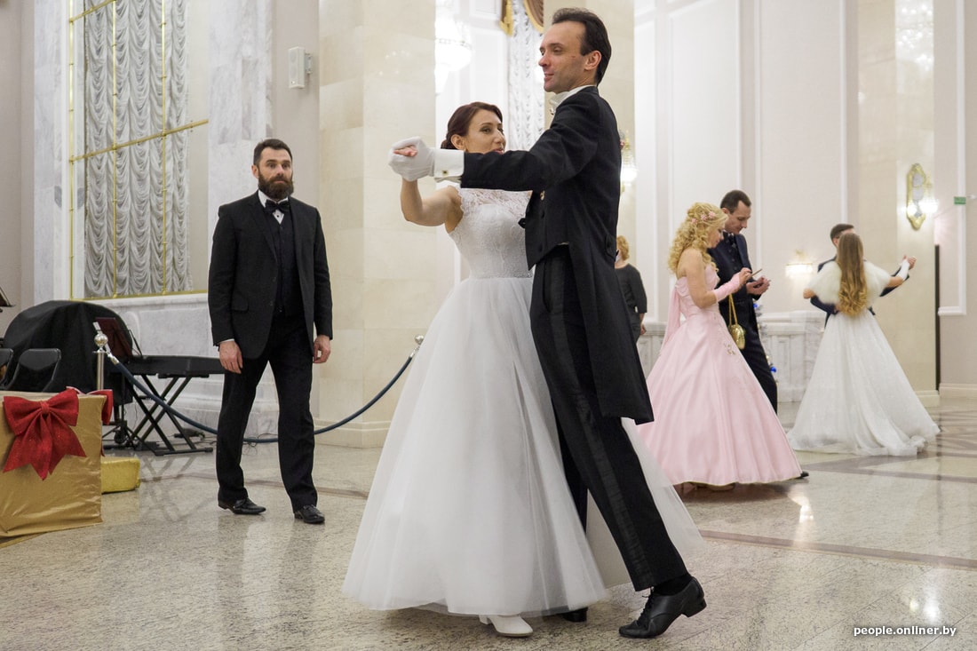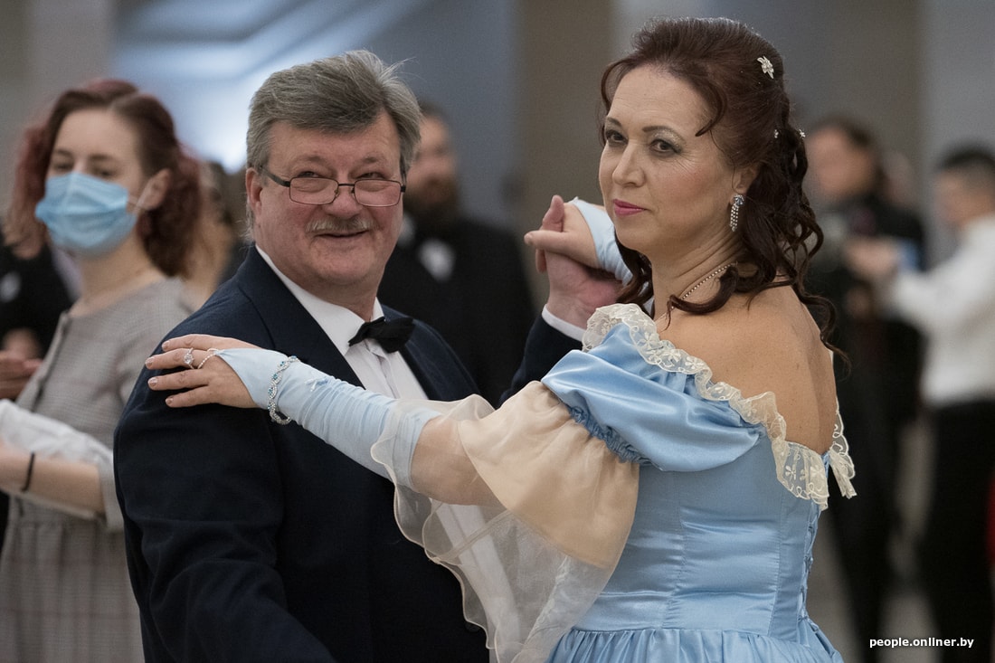 В новогоднюю ночь принято загадывать самые сокровенные желания. А что делать в староновогоднюю ночь? Танцевать. На настоящем балу. Уже и не посчитаешь, на протяжении скольких лет подряд в Минске, в Большом театре Беларуси 13 января проводится очень красивое и торжественное мероприятие — Большой новогодний бал. Вечерние платья в пол, смокинги, костюмы — неотъемлемая часть этого действа. Правда, в 2021-м, на фоне пандемии изысканные наряды должны были бы дополниться еще одним элементом — маской или респиратором, но, как видим, красота одержала верх над рекомендациями Минздрава и официальным масочным режимом.