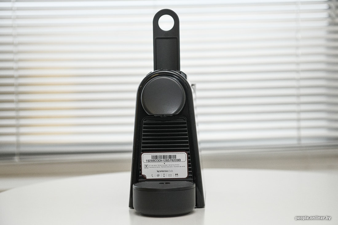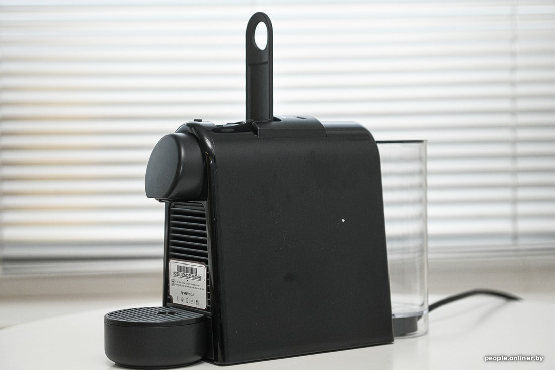 Одна из самых маленьких на рынке. С маленьким баком для воды. Маленькой емкостью для пустых капсул. Ну и прекрасно! Если гонять капсульную кофемашину больше чем в режиме «одна-две порции для одного-двух человек в день», то сломается экономика. Дизайна тоже, правда, нет. Просматривая фото, я не сразу понял, где передняя часть, а где задняя.