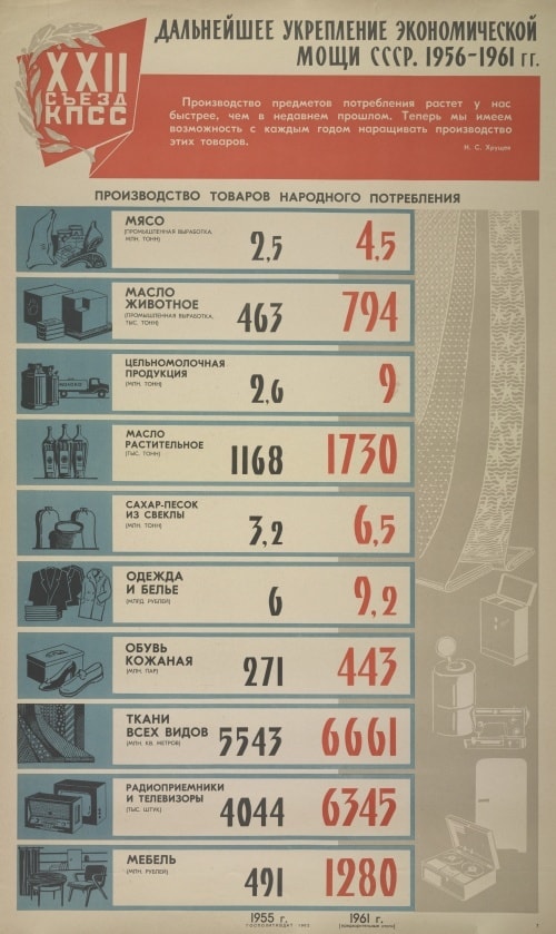 С самого начала строители коммунизма столкнулись с проблемой. Сформулировали ее так: «Темпы роста производительности труда должны опережать темпы роста заработной платы». Ничего не напоминает? 1961 год, да. Хорошо иметь для выступлений с трибуны ряд нерешаемых задач.