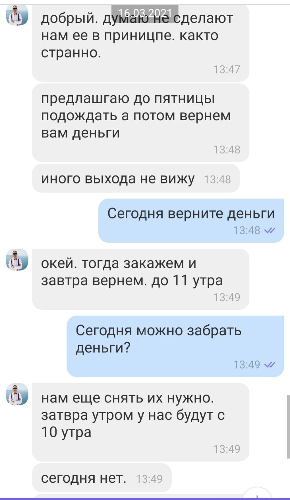— Звонил директору каждый день, на какой стадии моя виза, мне не сообщали, говорили, что «вот-вот будет». Полтора месяца ждал, а потом мне говорят, что ничего не сделают. Понимаю, что всякое может быть, но, если бы он меня предупредил, что у него что-то не получается, я бы нашел другое агентство, и все было бы хорошо. Но меня же уверяли, что все будет в срок. А я просто потерял время, месяц сидел без работы и сейчас не уехал, из-за чего у меня осложненное финансовое положение. Деньги он вернул не сам, а через своего сотрудника, даже не извинился.