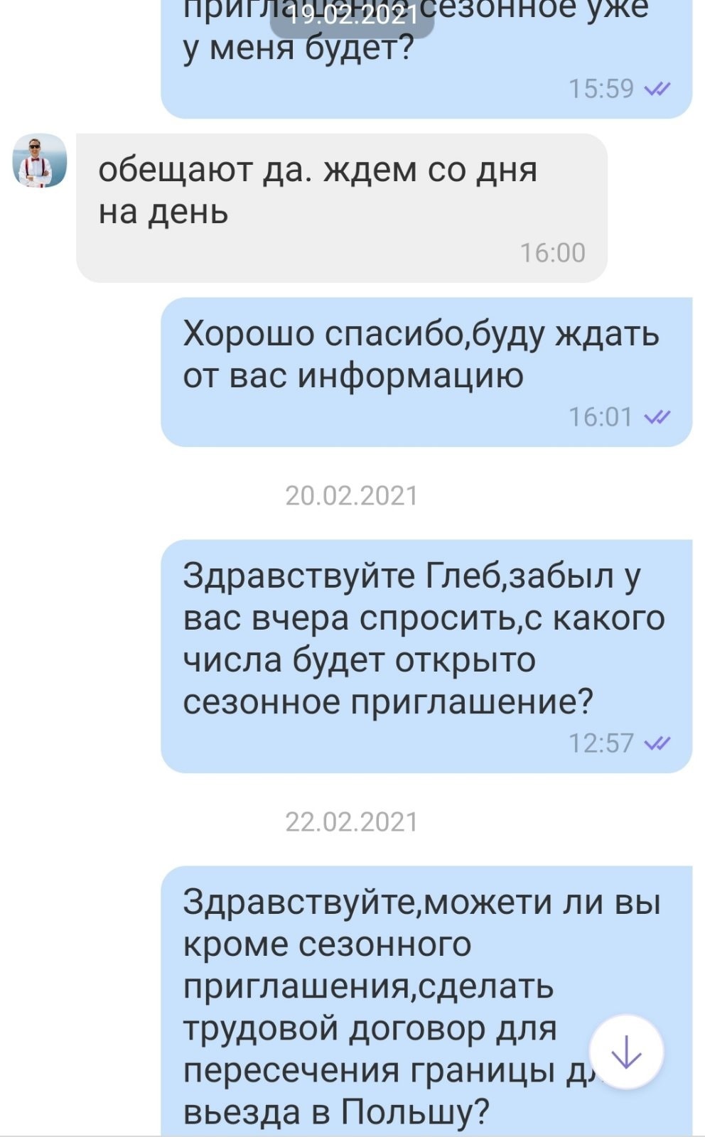 — У нас много клиентов, и иногда такое бывает, что приглашение просто не выдается. Как только нам стало известно, что приглашение Максиму не выдадут, мы в тот же день ему об этом сообщили. Он попросил вернуть деньги, и мы в тот же день с ним рассчитались. Дело в том, что мы никак не могли повлиять на эту ситуацию. Мы сказали, что нас «подставили» поляки, поэтому либо нужно подождать еще один месяц, и мы переподадим документы в другие органы, либо вернуть деньги. Это все делается через официальный орган, и, в силу того что он загружен или пандемия, он может затянуть выдачу документов. Периодически такое случается, это абсолютно нормальная ситуация. Клиент видит, что мы «косячим», хотя это третья сторона, но его это не волнует, и я это прекрасно понимаю, поэтому решено было вернуть деньги.