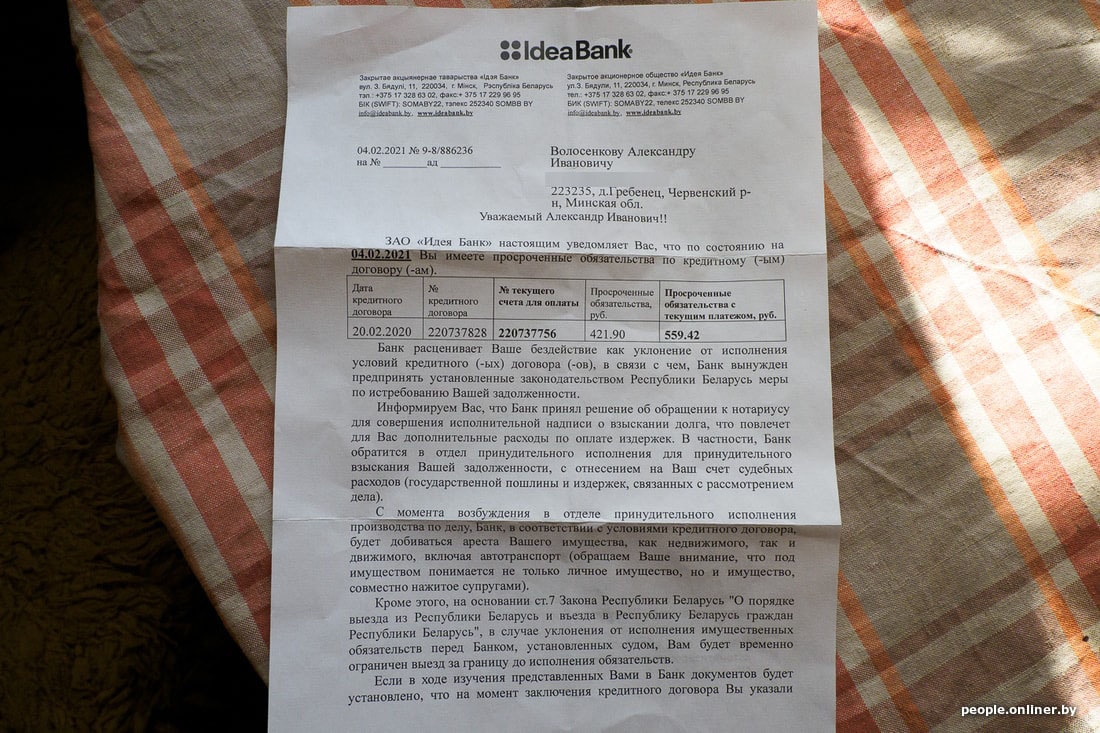 Думал попытаться найти что-то в Минске и на маршрутке ездить туда-сюда, но это же мрак! Все вакансии «держат» агентства — куда ни позвони, будет агент. А чтобы он тебе дал информацию — плати. Такое ощущение, что рыпаться бесполезно. Я один раз заключил договор — взяли 100 рублей и за весь месяц выслали шесть непонятных вакансий. Потом еще перезванивают и спрашивают: «Продлевать будете?» Конечно нет, это выкинутые деньги. Благо финансово помогает сын, жена сейчас работает (правда, в другой области, поэтому бо́льшую часть недели ее нет) — так и справляемся. Стараемся не унывать, — говорит Сан Ваныч, который, увы, уже успел задолжать банку.