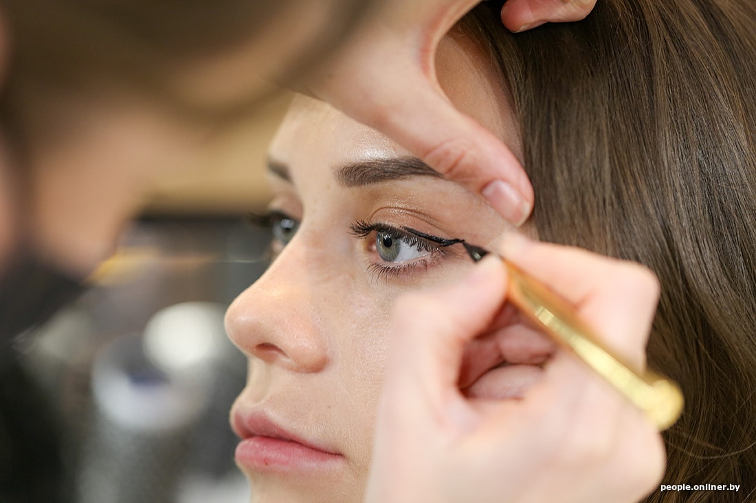 Ухоженные волосы и макияж — важная часть образа. Так как в тренде натуральность, мастер студии «Легкое волнение» решила не прятать молодость Насти за слоями пудры и теней. Акцентируем глаза стрелками, а для вечернего образа позже накрасим губы красной помадой. Волосы укладываем в ненавязчивые локоны.