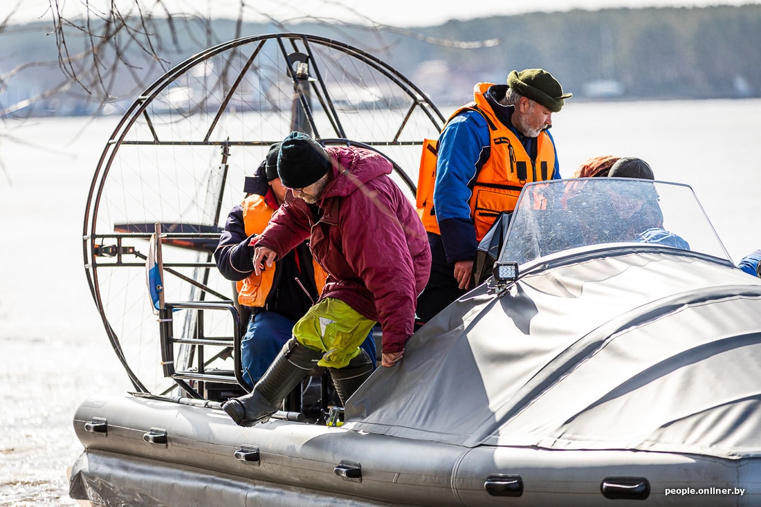 «Дед, бегом, я говорю бегом!» — к берегу Минского моря принесло яростный крик спасателей, которые подошли к очередной группе пенсионеров. Осводовцы кружили у лунок и громко ругались, а потом все же уговорили старичков пересесть с металлических коробок в мягкие сиденья своего катера на воздушной подушке.