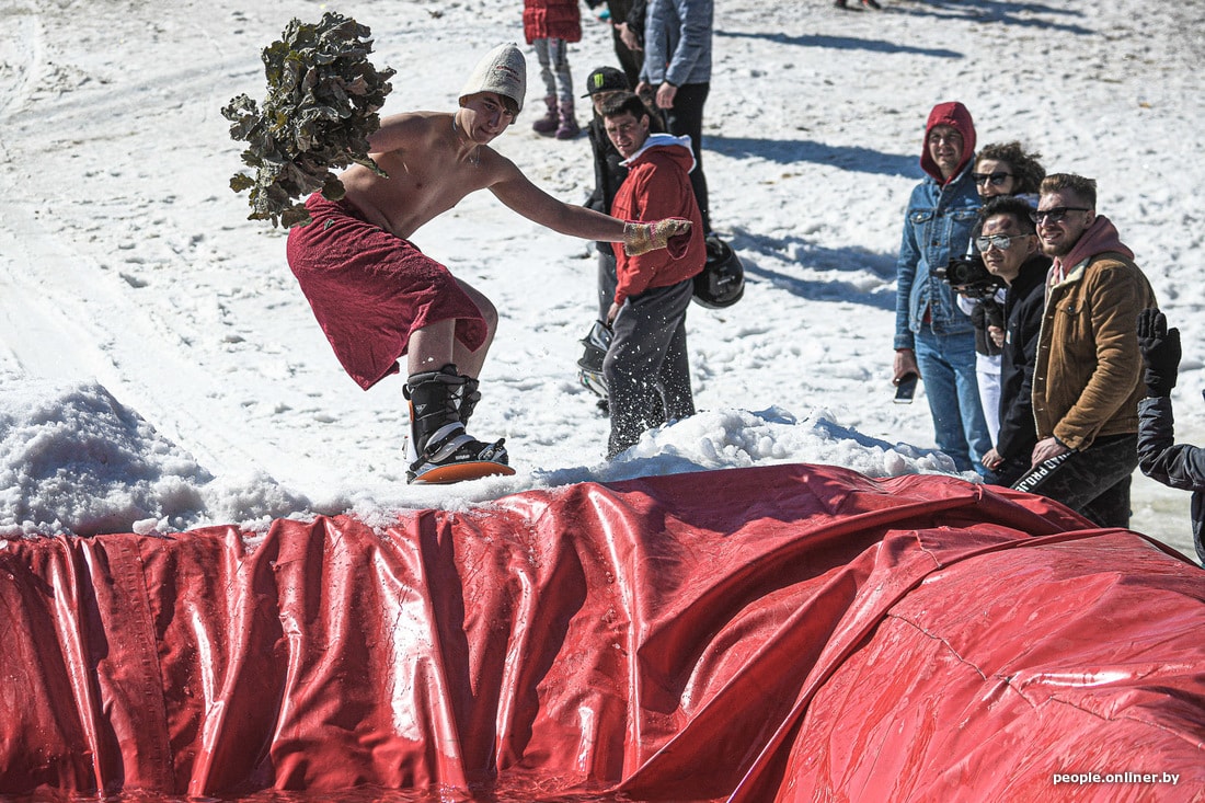 Опытные прыгуны надевали под низ водолазные костюмы, но и они не спасали. Старое доброе полотенце было незаменимо. Снег конвертировался в ручей и тек со склона к обуви зрителей, а через 40 минут выступления вся площадка стала одной большой лужей. Но зрителей это не испугало.