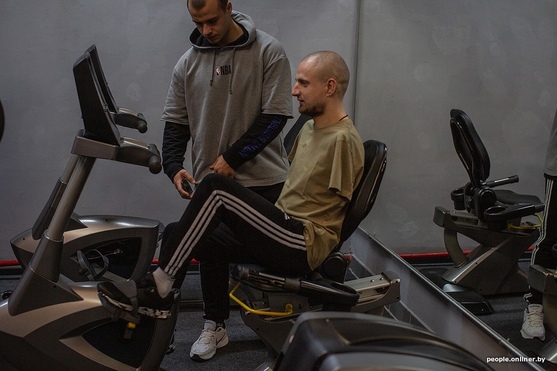 Мы встретились с Денисом в его любимом фитнес-клубе Fox Club — тут он занимается три раза в неделю. Он хочет накачать ноги — пока непонятно зачем, ведь к выступлениям и реальным боям герой относится трезво («Рискованно, можно же получить дополнительные травмы»), поэтому он колбасит груши. Его тренер Адам помогает ему с туалетом, переодеваниями, соцсетями и подбадривает его.