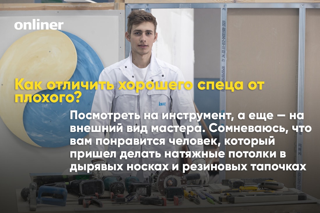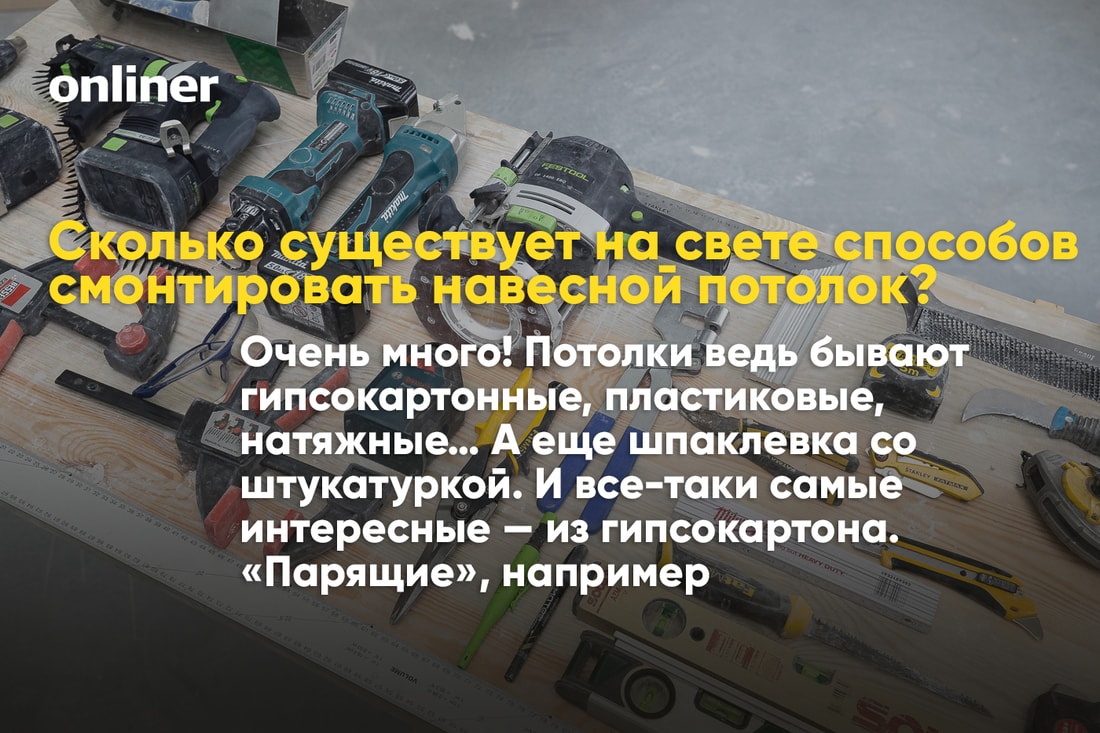 — Это для любого мастера серьезный вопрос, потому что на хорошие инструменты нужно зарабатывать годами. Представьте, один только шуруповерт Festool стоит около тысячи евро. Сколько нужно крутить гипсокартон отверткой, чтобы заработать на него?.. Минимальный набор инструментов для новичка обойдется примерно в $10 000: шуруповерт, нож-резец, ножницы по металлу, перфоратор, лазерный уровень, пылесос.