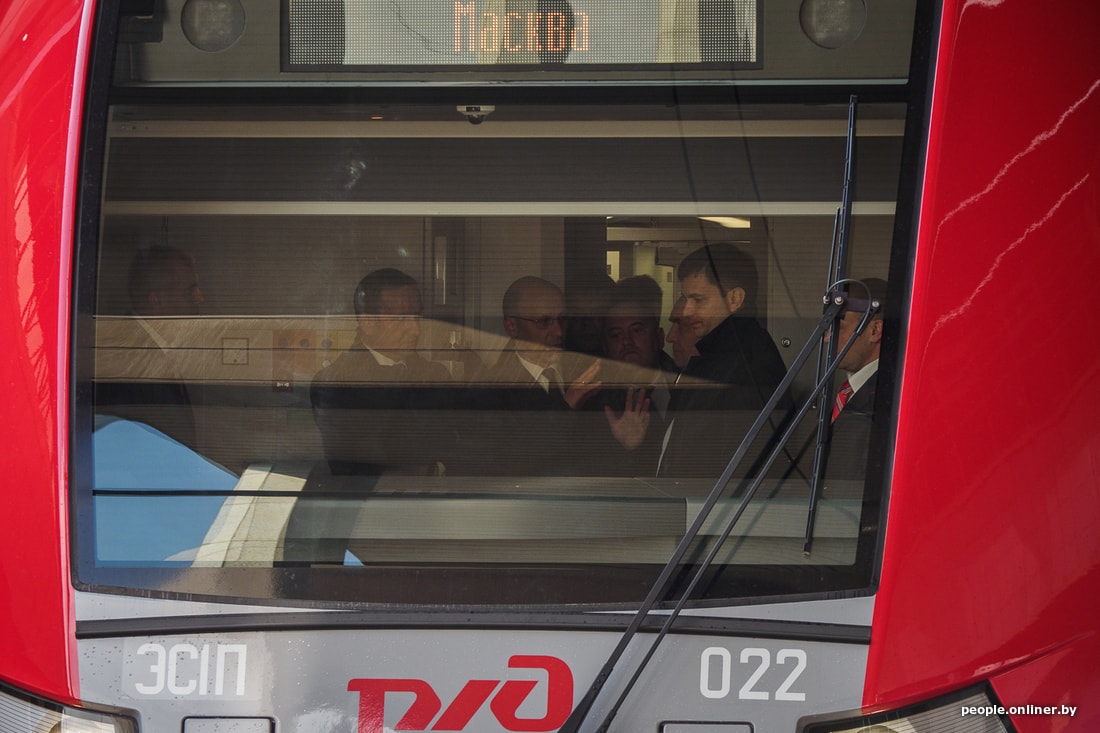 Сегодня торжественно отправили «Ласточку» с награждением первых покупателей билетов (билеты раскупили за считаные часы, а некоторым держателям вручили именной билет и картину под звуки аплодисментов), красной ковровой дорожкой и пламенными речами руководителей железной дороги. Onliner провожал в путь первых.