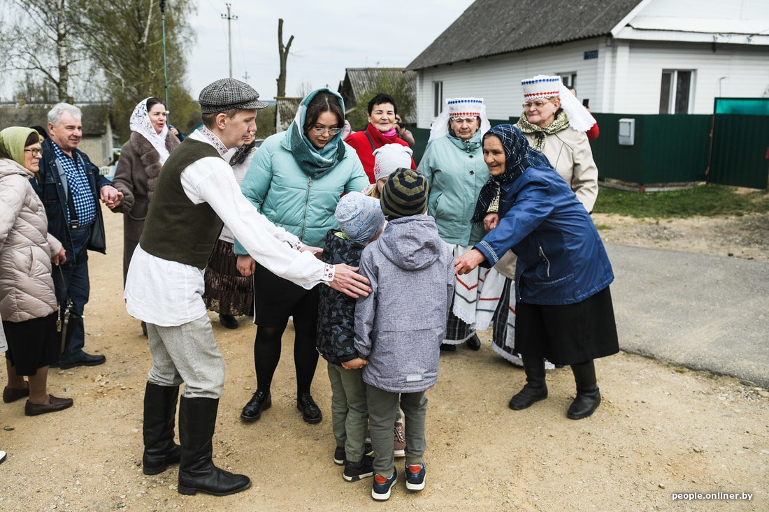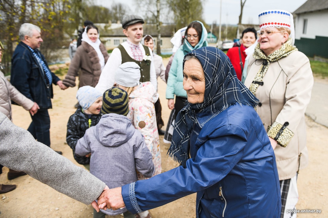 У Маркава каля царквы а 14-й гадзіне шматлюдна. Сюды прыйшлі і старыя, і маладыя, каб зладзіць мясцовы абрад. У аграгарадку пражываюць каля 700 чалавек, аднак сёння да іх прыехалі дзеці і ўнукі з гарадоў — яны таксама хочуць падтрымаць традыцыю.