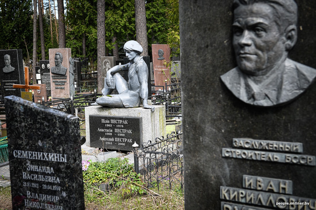 Міхась Лынькоў, Пятро Глебка, Пятрусь Броўка, Піліп Пестрак, Аркадзь Куляшоў, Пімен Панчанка, Іван Чыгрынаў, Кандрат Крапіва, Яўгенія Янішчыц, Еўдакія Лось — своеасаблівы беларускі пантэон сярод мяккага ценю, які дае стары сасновы лес. Дзякуючы інфакіёску з сістэмай «Мемарыял» можна за хвіліну высветліць сектар і рад, дзе пахаваны знакаміты (або не) чалавек — дастаткова ведаць яго імя і прозвішча.