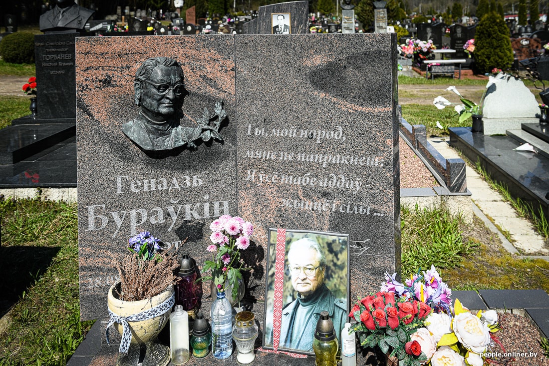 Нягледзячы на тое, што ў пісьменніцкім сектары, якi знаходзіцца злева ад цэнтральнага ўвахода на Усходнія могілкі, усё яшчэ ёсць вольныя месцы (і нават у кастрычніку 2020-га сюды быў перапахаваны Змітрок Бядуля), магіла Генадзя Бураўкіна апынулася ў зусім іншым месцы — адносна новым і «голым» сектары, дзе няма дрэваў і ценю. Знайсці яго даволі складана, трэба прайсці амаль што праз увесь могільнік і блукаць між радамі.