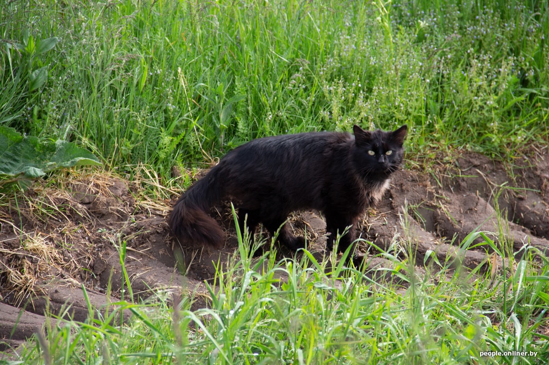 На границе с жилыми домами и проселочной дорогой разместились поля и луга, на горизонте — лес, через просветы которого отливает желтизной рапс. А с противоположной стороны телочника (место, где живут беременные коровы) — кладбище. Рядом коровники — из них пастух и выгоняет по три раза на день рогатый скот. Все 240 голов уже на поле. Много это или мало, непонятно, но, по словам другого пастуха, Якова, цена одной коровы — примерно 3 тыс. рублей. Получается, 275 тыс. «зелени» приумножается с помощью зелени.