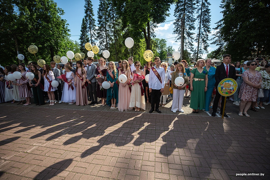 Ровно за 30 минут площадь подготовили сотрудники Дворца культуры: микрофоны настроены, ковры расстелены, арка собрана. Одиннадцатиклассники ждут команды, и она подается с неизменным началом: «Дорогие выпускники…»