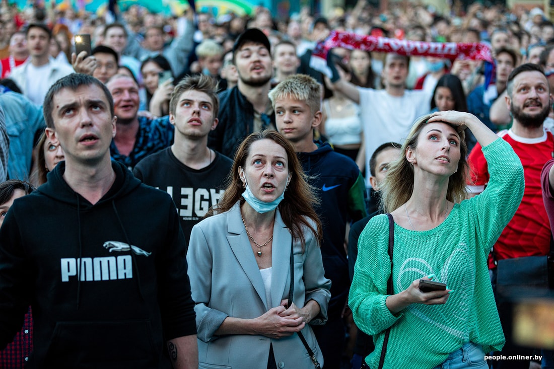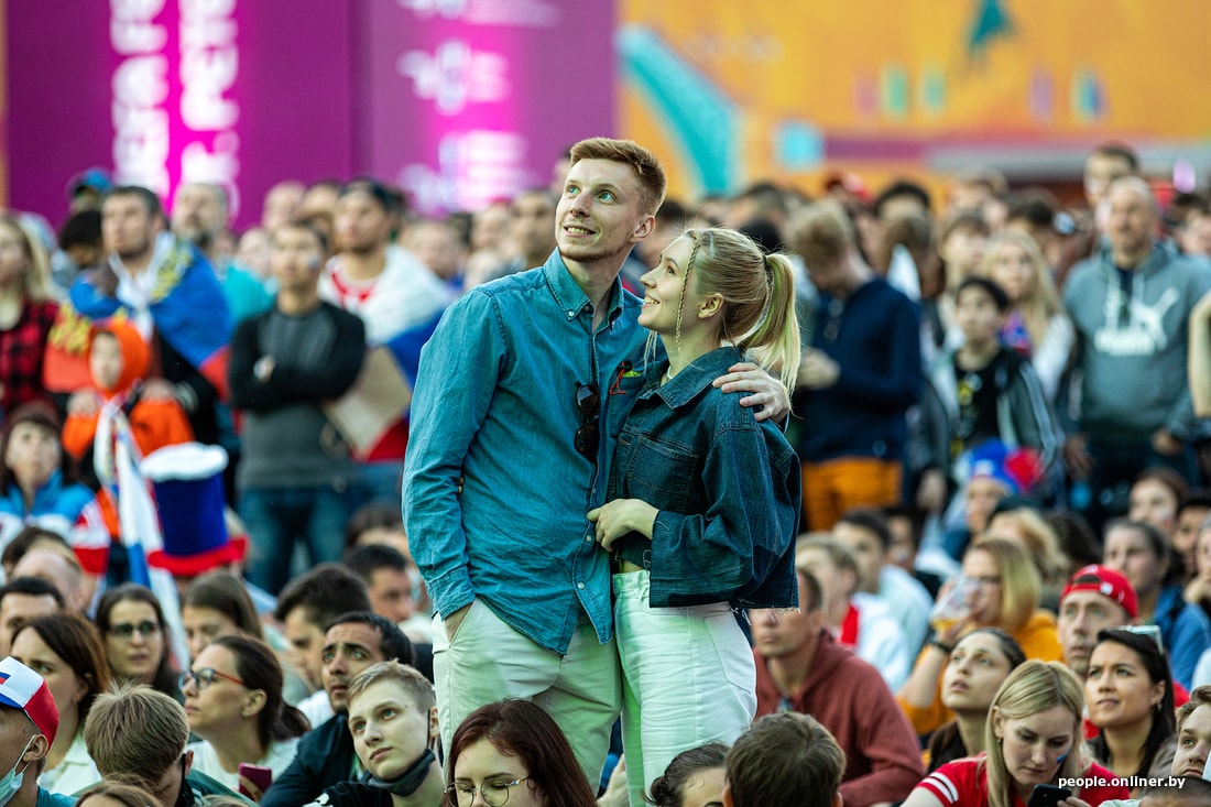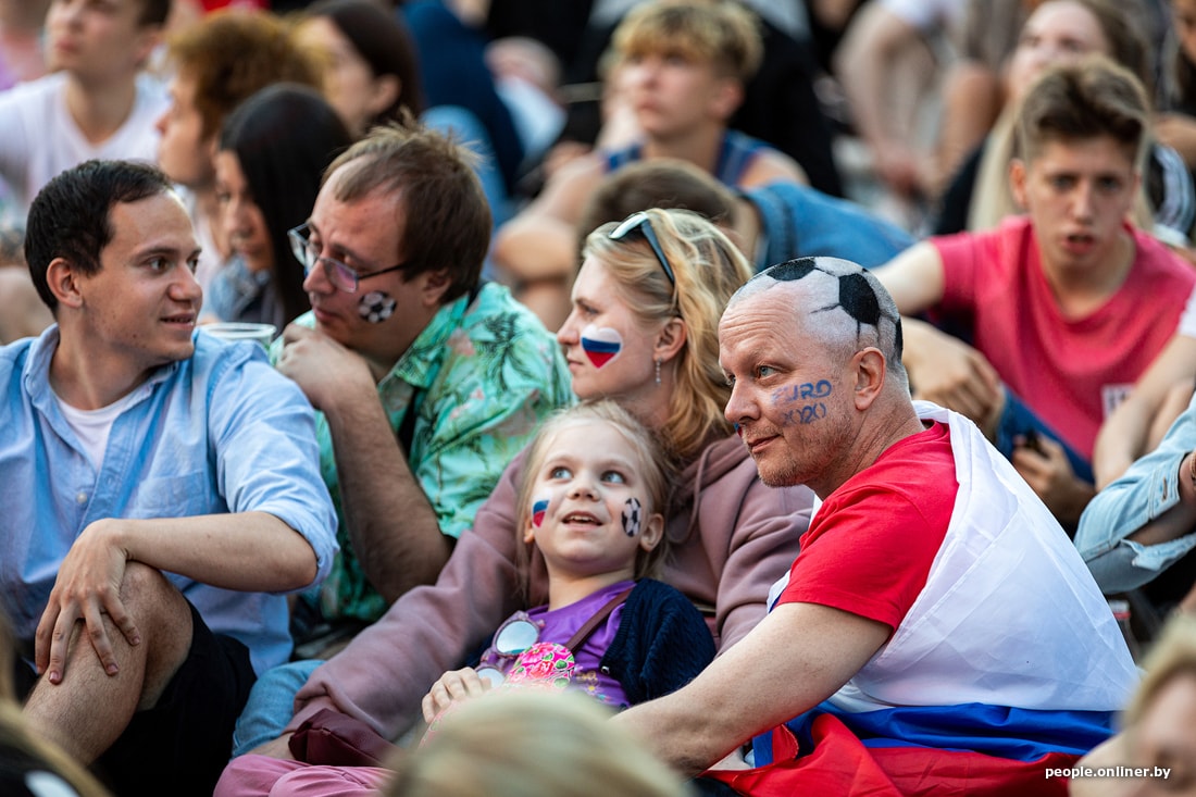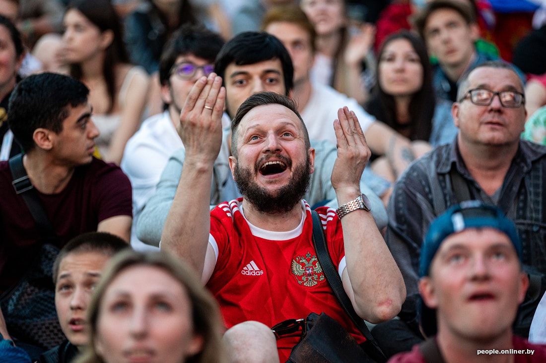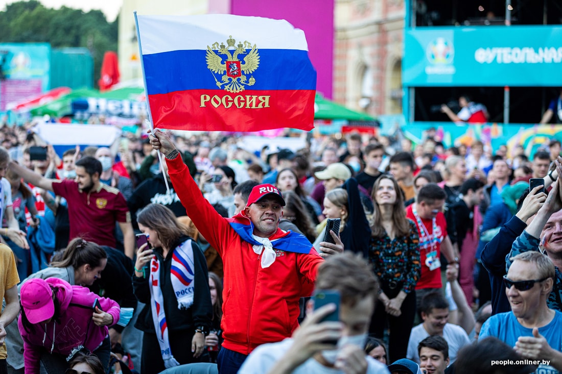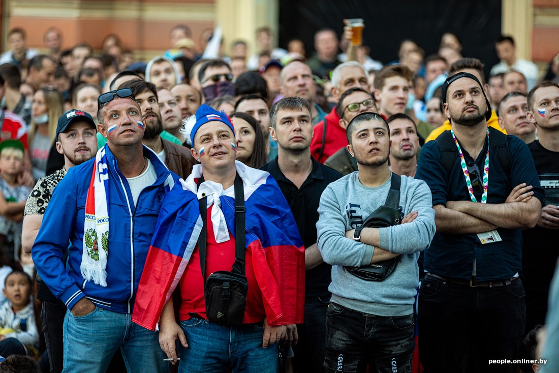 Внутри очень много болельщиков. Они скандируют пламенное «Россия!». И, кажется, всерьез верят в успех национальной сборной в поединке с командой номер один в рейтинге ФИФА. Еще до начала игры происходит самый обсуждаемый момент матча: россияне отказались встать на одно колено в поддержку акции BLM, а болельщики освистали бельгийцев, когда те опустились на колено. В фан-зоне этот момент остался практически незамеченным. Люди поют гимн, потом ревом тысяч глоток встречают стартовый свисток, а на каждое касание мяча футболистами своей команды реагируют так, будто сейчас произойдет маленькое чудо.