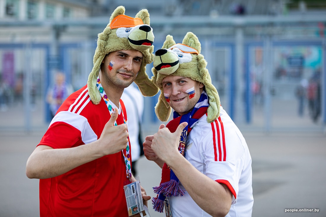 — Ребята, мы драться будем! — бьют себя в грудь российские болельщики, когда мы напоминаем им про предстоящий матч. Они отвлекаются от групповых фотографий, братаний и кричалок, начинается серьезная аналитика: — Конечно, бельгийцы сильные и, скорее всего, выиграют. Но шансы у нас есть! Из группы-то точно выйдем! Ну допустим, бельгийцам проиграем. Зато потом датчан и финнов стопудово обыграем!