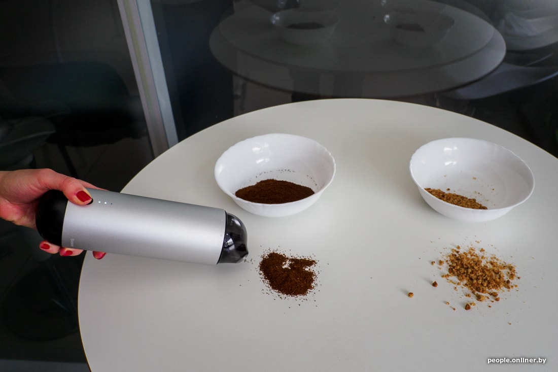 Посмотрим, как девайсы справятся с более твердым (кофе) и более крупным (крошки печенья) мусором.