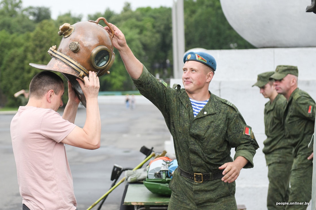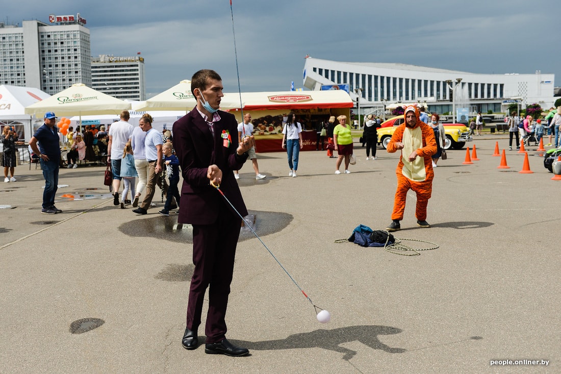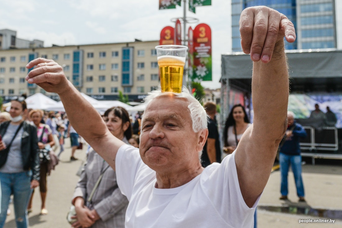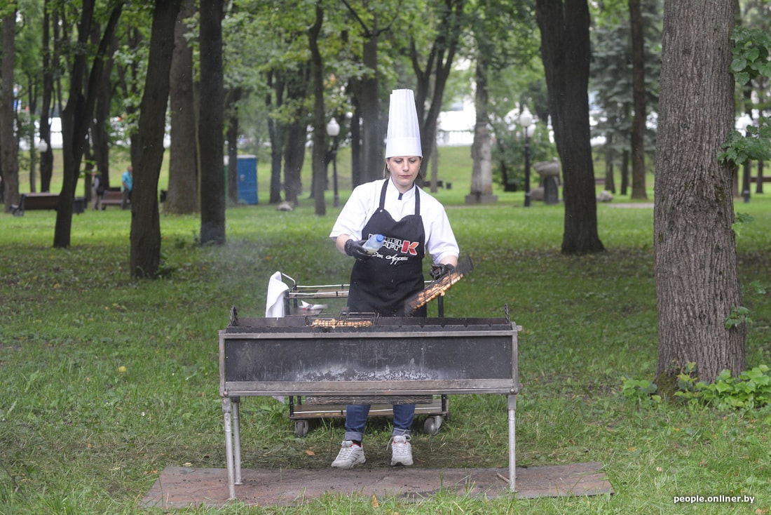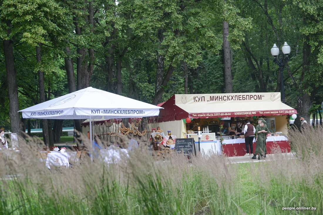 На сцене, обрамленной милиционерами, стараются производить движ и песни. Все это в окружении шашлыков, драников, колбасок и даже лангустинов с улитками. Порция шашлыка — в районе 4 рублей, лангустинов — 12 рублей, улиток — от 6 рублей.