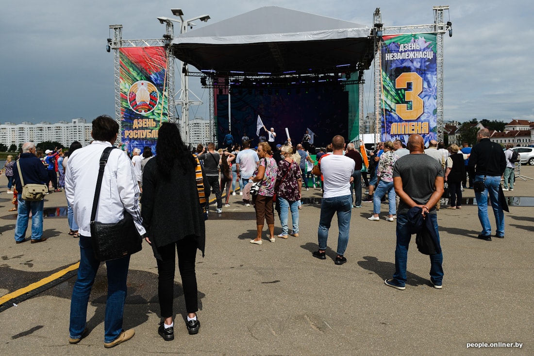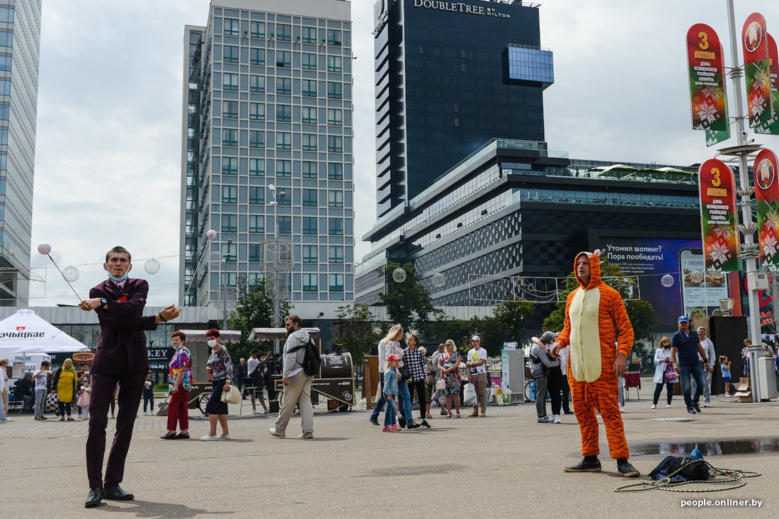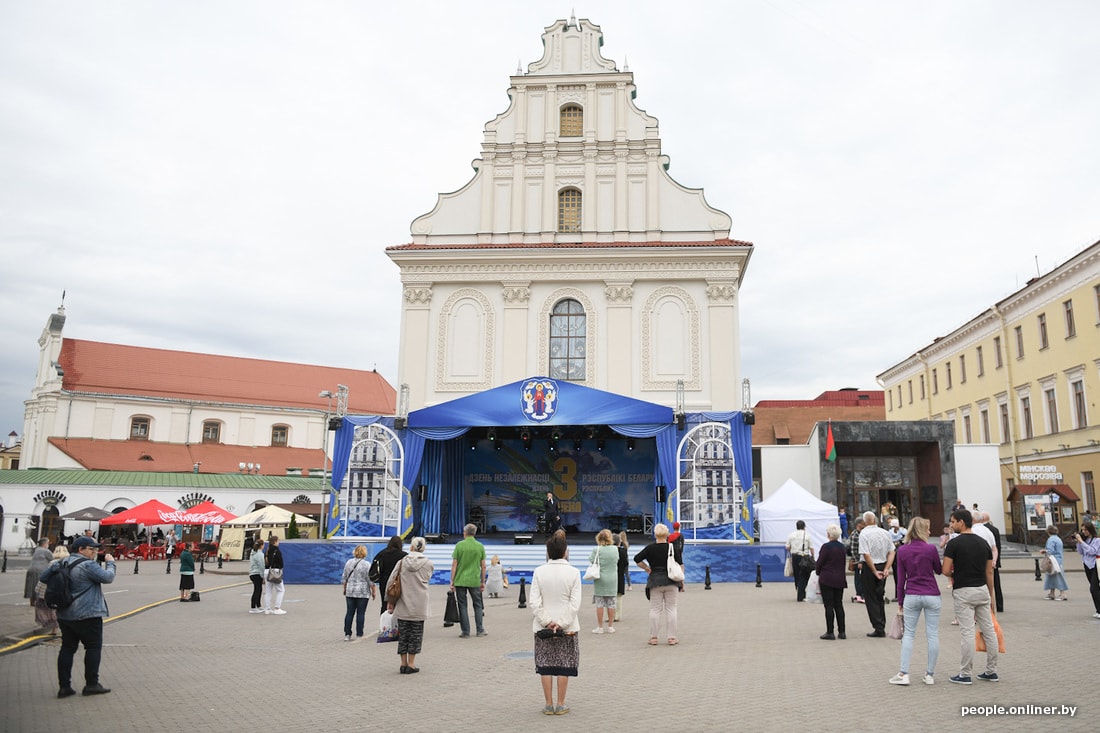 Утром в столице больше серости, которую обещали на выходные синоптики, чем праздника. Пока в Кафедральном соборе митрополит Вениамин объявляет молитву «За Беларусь», остальной Верхний город спит, пропуская понемногу людей на Зыбицкую. На утреннем проспекте Независимости никаких централизованных действий. Праздник как будто слился с обычной субботой, которую многие любят проводить за городом.