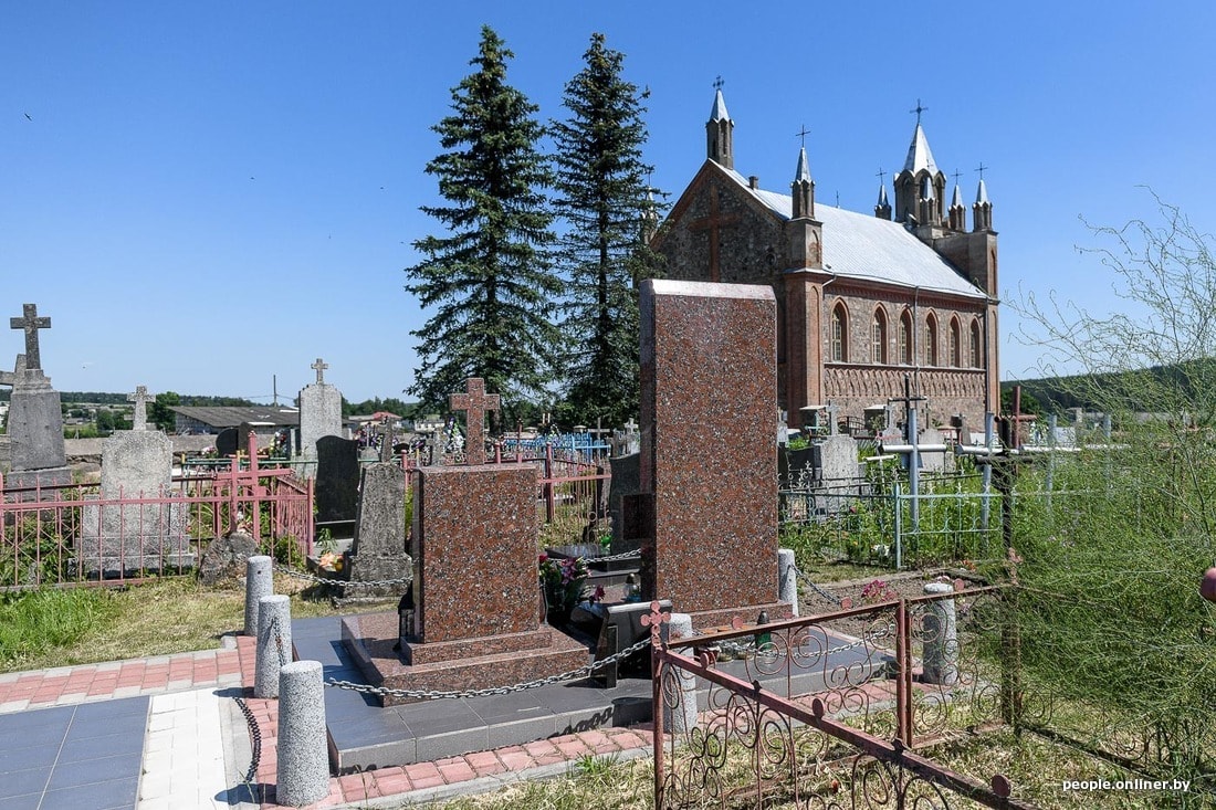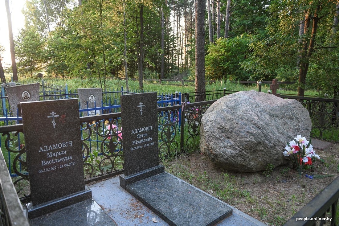 Народны пісьменнік пахаваны ў вёсцы Новікі Мядзельскага раёна. Нягледзячы на тое, што могілкі даволі вялікія і старыя (вы толькі паглядзіце на гэтыя камяні!), адшукаць мемарыял не цяжка: трэба праехаць да канца плота (а не спакушацца на цэнтральны ўваход) і павярнуць налева (калі ехаць з Мінска). Асобны пад’езд і валун каля прыступак не дазволяць памыліцца.
