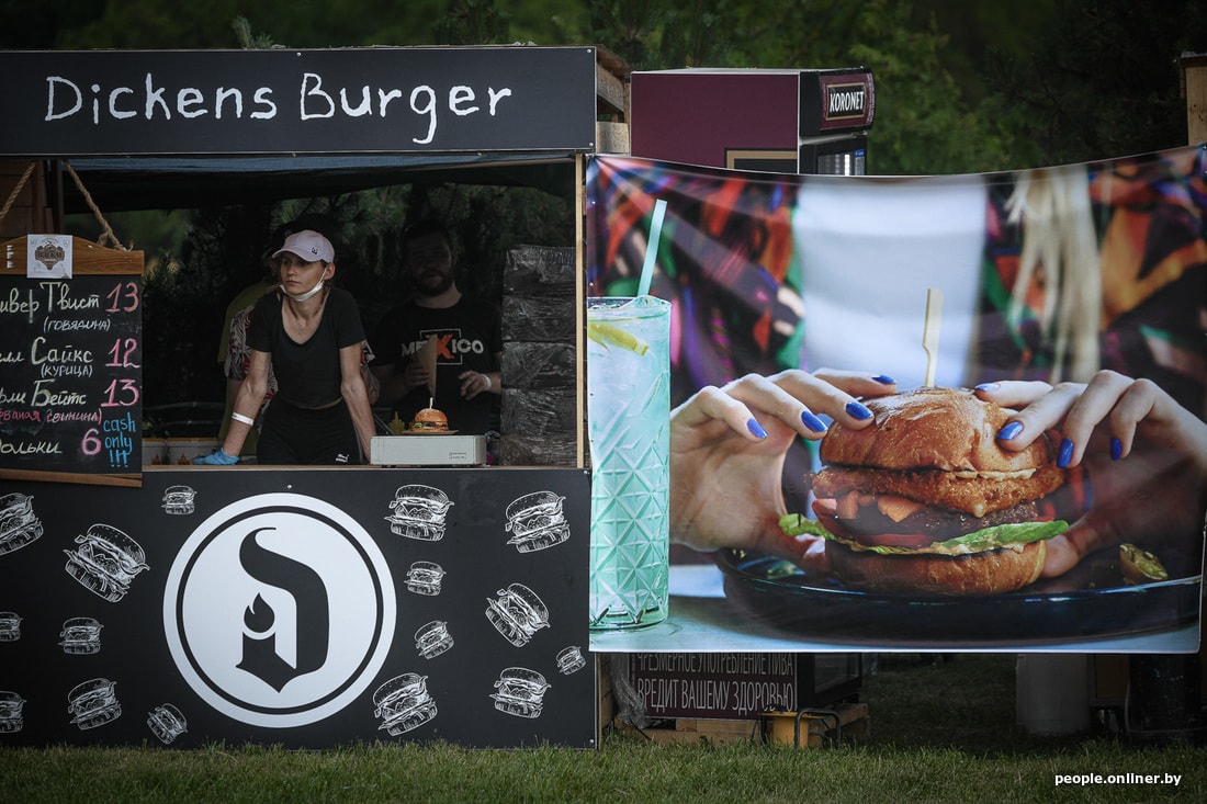 Если июньский пикник Vulitsa Ezha посетителей встречал большими очередями до самого входа в парк Челюскинцев, то в июле обошлось без лишней траты времени и усталых ног. Людей было заметно меньше, всему виной — жара в 32 градуса. Но те, кто все же дошли до фестиваля уличной еды, смогли отведать: камчатского краба, молочного поросенка, лангустинов, устриц, улиток, чего-то мексиканского, холодненького, жидкого, твердого, сочного, нежного... Короче, еды было и вправду много. Если и пробовать все подряд, то непонятно, кто сдастся раньше — желудок или кошелек. Журналисты Onliner сходили на городской пикник и узнали, в чем его отличие от прошлого, какие цены, конкурсы и призы.