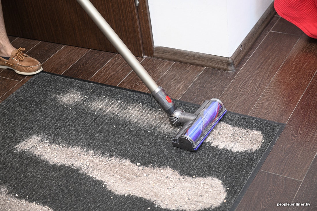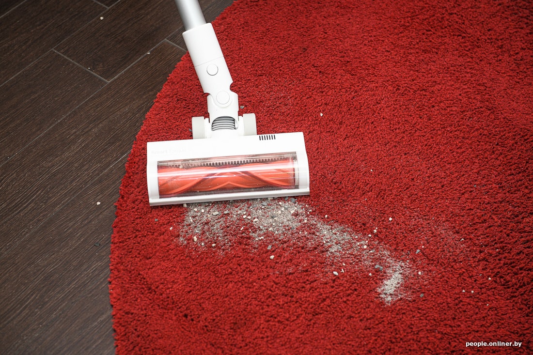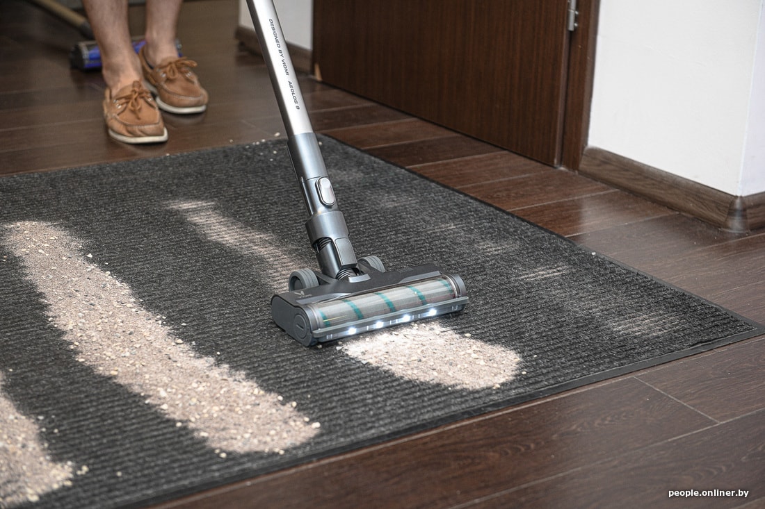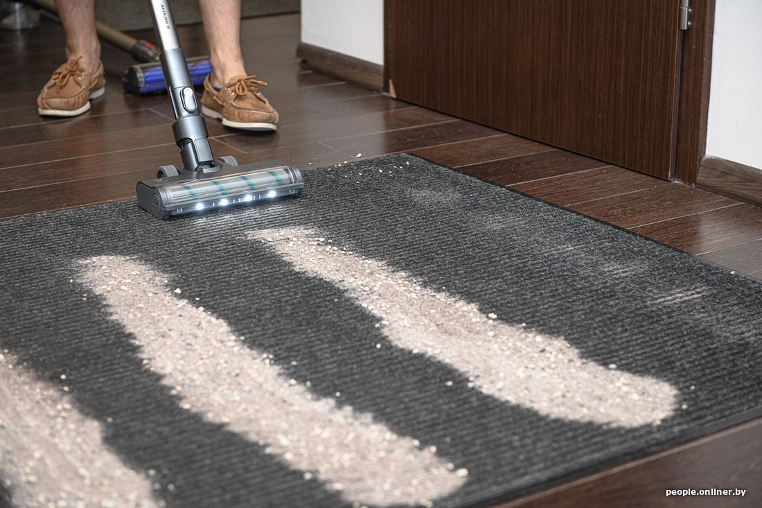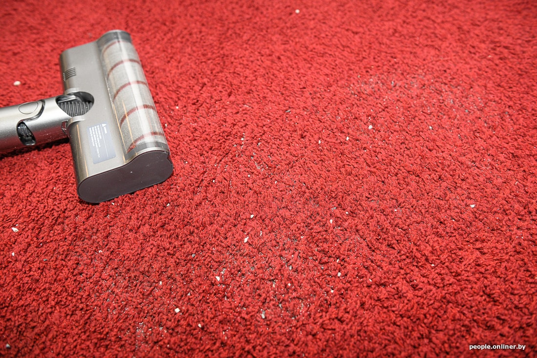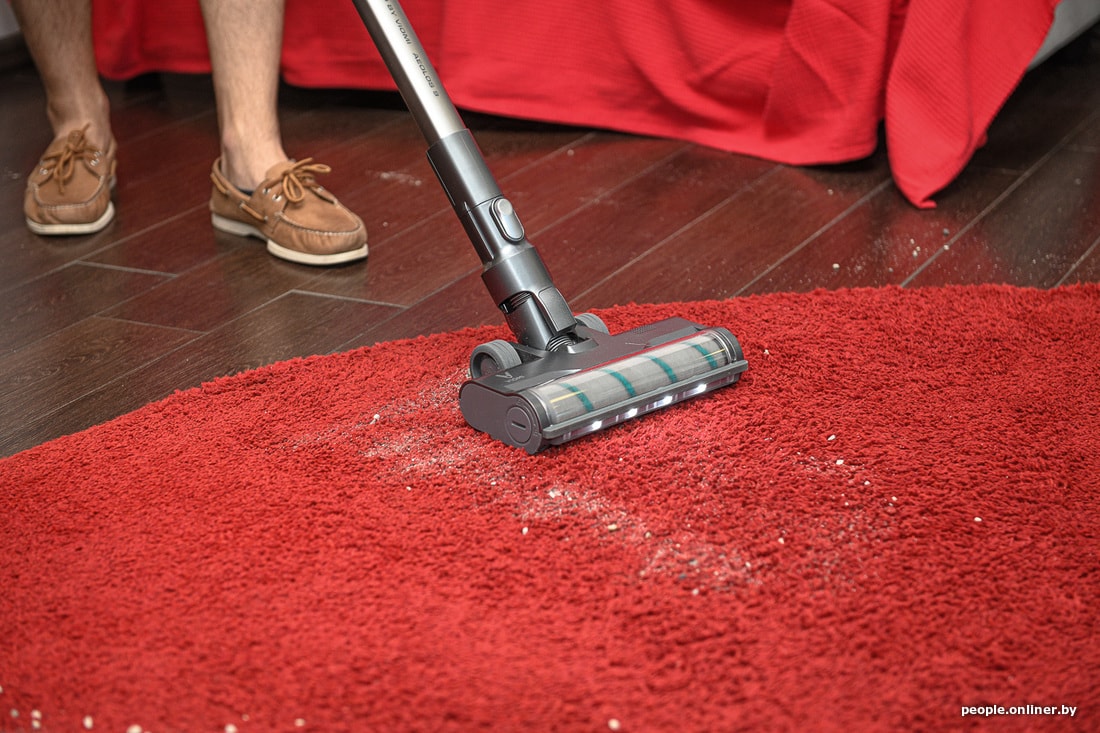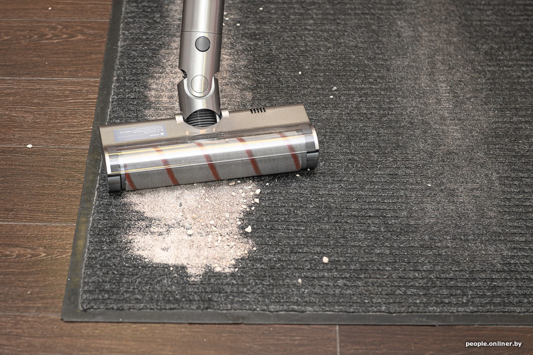 Производитель рекомендует использовать Dreame V11 исключительно для уборки твердых покрытий. При длительном использовании на ковре щетка перегревается, и срабатывает защита, в чем мы убедились сами дважды во время тестирования.