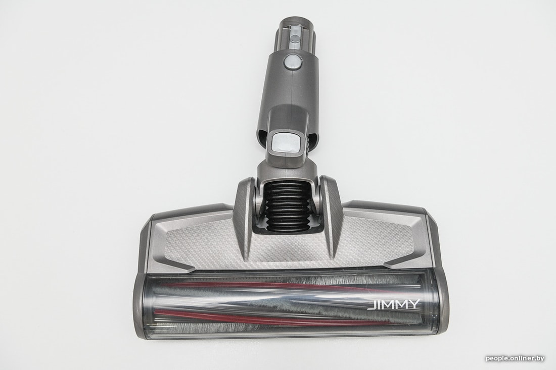 Jimmy JV85 Pro прямо сейчас продается с хорошей скидкой и имеет, пожалуй, самую богатую комплектацию из всех пяти моделей. Трубка имеет гибкий шарнир для комфортной уборки под кроватями и тумбами. Основная щетка поставляется с валиком для твердых поверхностей, но в наборе есть сменный — для ковров. Мини-электрощетка, по заверениям производителя, отлично подойдет для чистки матрасов. Гибкий шланг, как и у Dreame, входит в комплект, но контакты для подключения электрощетки на нем отсутствуют. Насадки 2-в-1 две: широкая и узкая. В набор вошла также насадка с мягкой щетиной и специальный поворотный переходник для уборки высоких поверхностей. База для хранения включается в розетку, пылесос заряжается прямо на ней. Запаса аккумулятора хватает максимально на 70 минут уборки, полная зарядка займет около 5 часов.