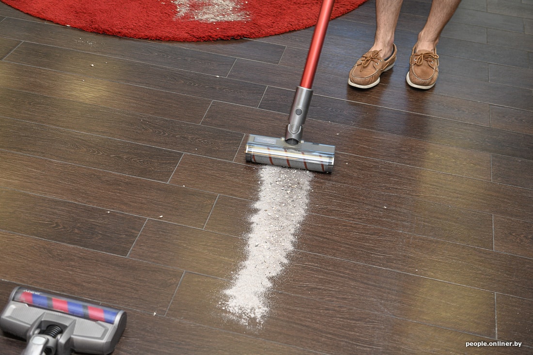Автономность замеряли в стандартном режиме, а затем еще раз, на максимальном. Пылесосили не только твердые поверхности вроде плитки или ламината, но и ковролин, и даже немного ковры. В общем, условия были максимально приближены к реальным. Разве что Dreame пришлось тестировать только на плитке: для нетвердых покрытий, как мы уже отмечали выше, пылесос не предназначен, и щетка на них просто перегревается. Результаты по времени работы мы также собрали в таблицу. Хотелось бы отметить, что показатели «китайцев» далеки от заявленных производителем. Скорее всего, дело в том, что представители брендов измеряют данные на экорежиме, который мало кто использует в повседневной реальности, а также без моторизированной щетки. Значения Dyson же, хоть и не совпали, больше остальных приближены к реальным, потому что экорежим в нем попросту отсутствует. Наверняка чисто на твердых покрытиях и без электрощетки модель проработала бы дольше.