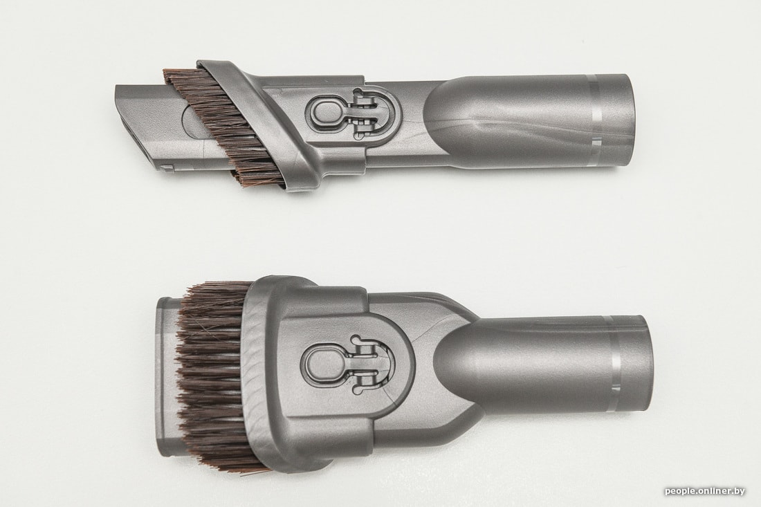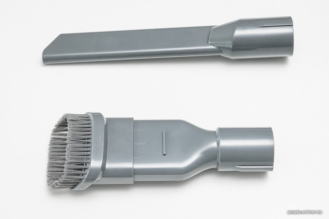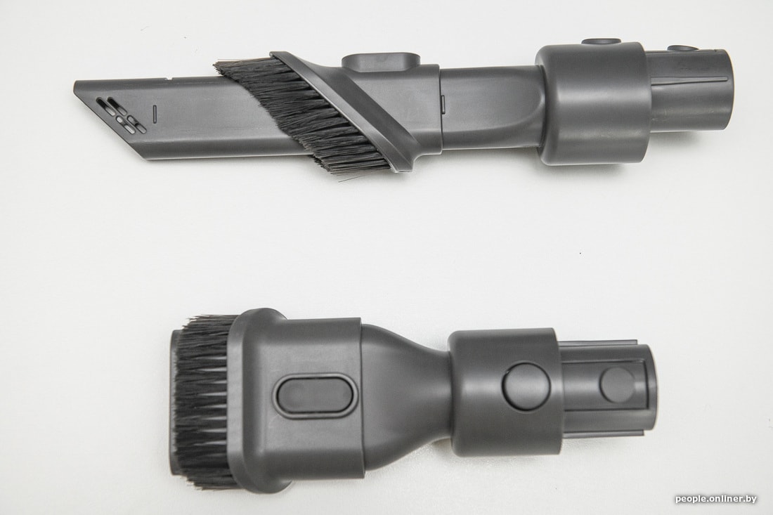 Помимо электрощетки, модели объединяет также наличие уменьшенной электрощетки для мягкой мебели, минимум одной щелевой насадки и насадки со щетиной для уборки труднодоступных мест. Из общего также стоит отметить специальный кронштейн для хранения пылесоса на стене. На этом, пожалуй, сходства заканчиваются, и начинаются отличия.