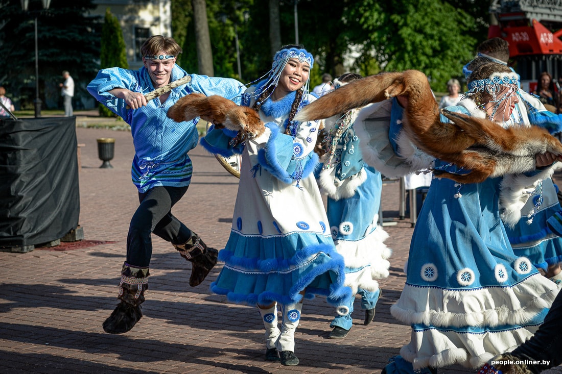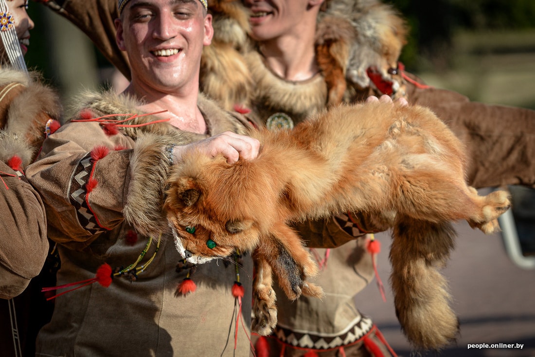 Стоит отдать должное выступавшим ребятам из Камчатки: надеть на себя одежду из кожи оленя или национальные наряды в 34-градусную жару — уже достижение, но прыгать, петь, крутить шкурой лисы и бить в барабан без перерыва целый час — нечто из области фантастики. Гостей с Дальнего Востока сменяет шоу бразильских барабанов.