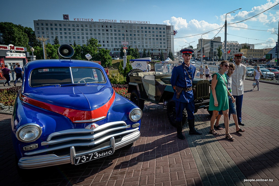 Перед концертным залом «Витебск» показывали выставку автомобилей. Тут удивляться можно было разве что необычной расцветке и местечковому тюнингу, так как подобные автомобили по сей день рассекают по стране. Да и в категорию ретро им рановато.