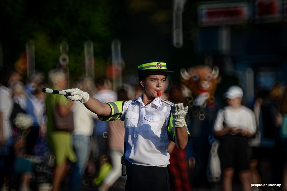 К 18:00 возле Летнего амфитеатра появились: волк в погонах, филин в бронежилете, Дядя Степа с увеличенной головой и прочие звери в форме. Также можно было встретить трех девиц на ходулях, пчелку, розового фламинго и парочку живых скульптур.
