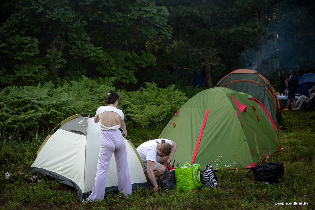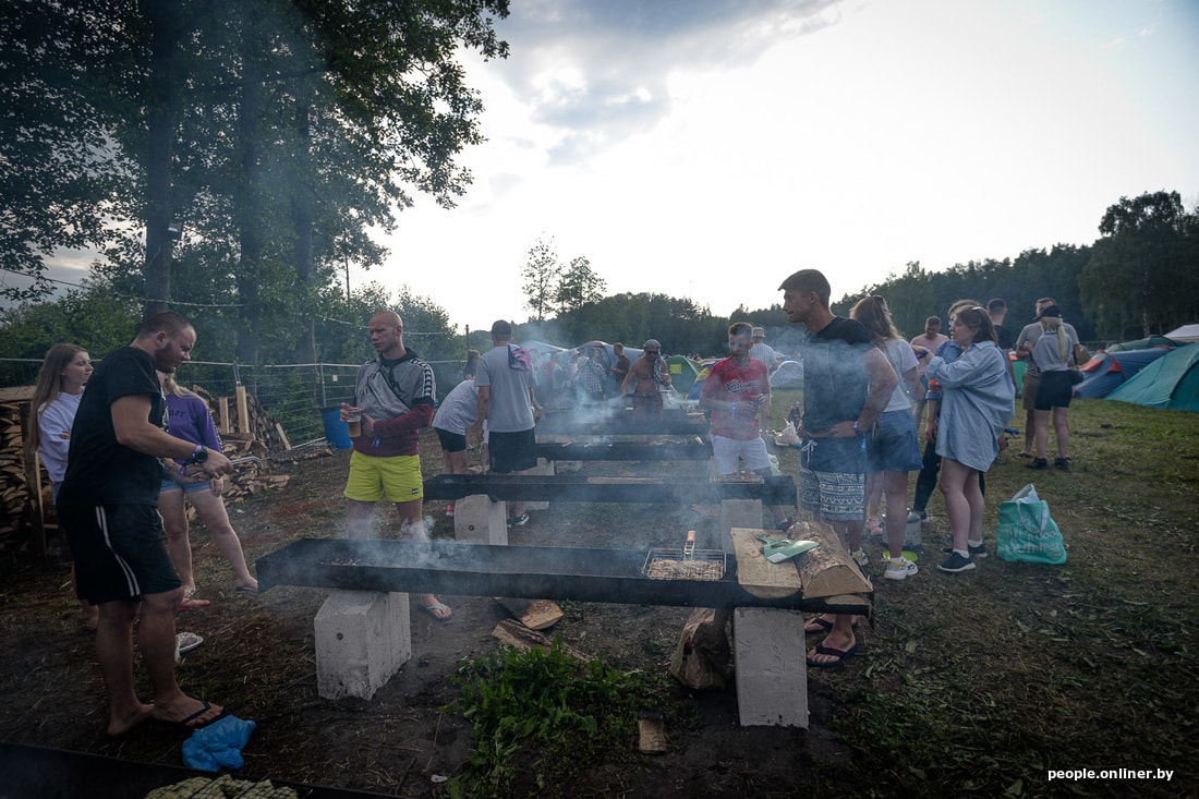 Кемпинг — палаточный городок фестиваля. Очередь собирается человек из 50, охранник проверяет содержимое сумок. Увидит стекло, больше литра пива или полулитра воды — сильно расстроится и попросит ликвидировать на месте, еще и посмотрит равнодушно. Что дает кемпинг? Во-первых, тут можно поставить палатку и спать в горизонтальном положении, чего не могут позволить себе жители паркинга, которые спят в машинах. Во-вторых, можно жарить мясо без угрызений совести, причем коллективно. Дрова здесь же, как и куча профессионалов-советчиков. В-третьих, есть доступ к озеру, душу, туалету и нескольким торговым точкам.