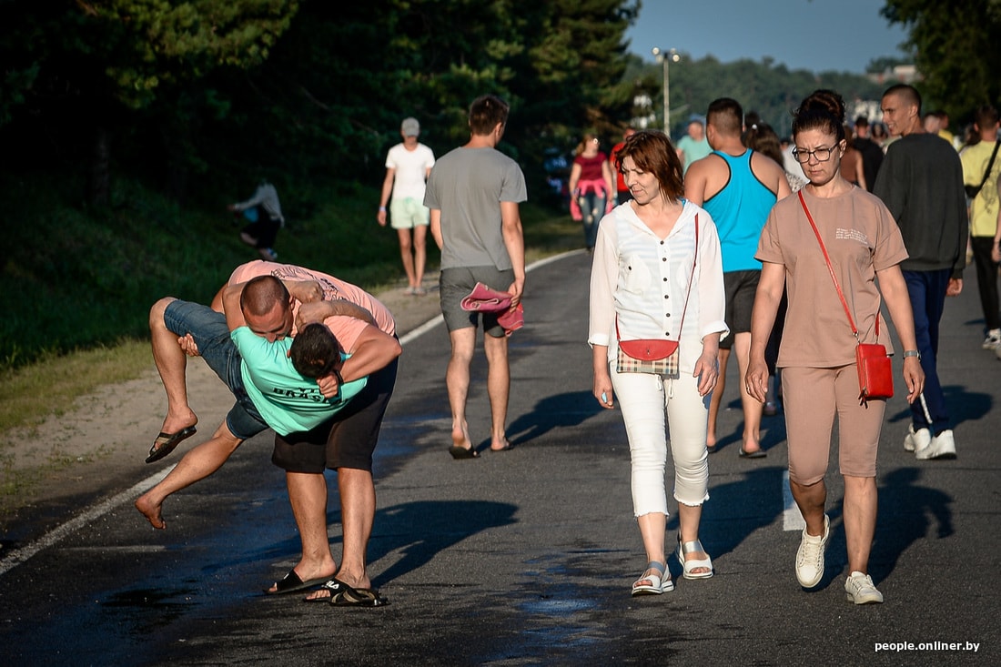 С наступлением темноты в небо запускают единичные залпы салюта, музыка продолжает доноситься до двух утра, но вот что происходит на паркинге… Там люди веселятся всю ночь напролет, шествие возглавляют «КиШ», «Ляпис» и какое-то танцевальное «туц-туц». Пока ребята отсыпаются, а организаторы готовятся к самому тяжелому и незабываемому дню, упомянем обязательные к посещению активности на субботу: выбрать мисс Viva Braslav, побывать на конкурсе мокрых маек, заняться-таки йогой (к тому же она тут пивная), танцевать и плясать до победы — а она уж точно наступит не раньше четырех утра, как и запланировано.