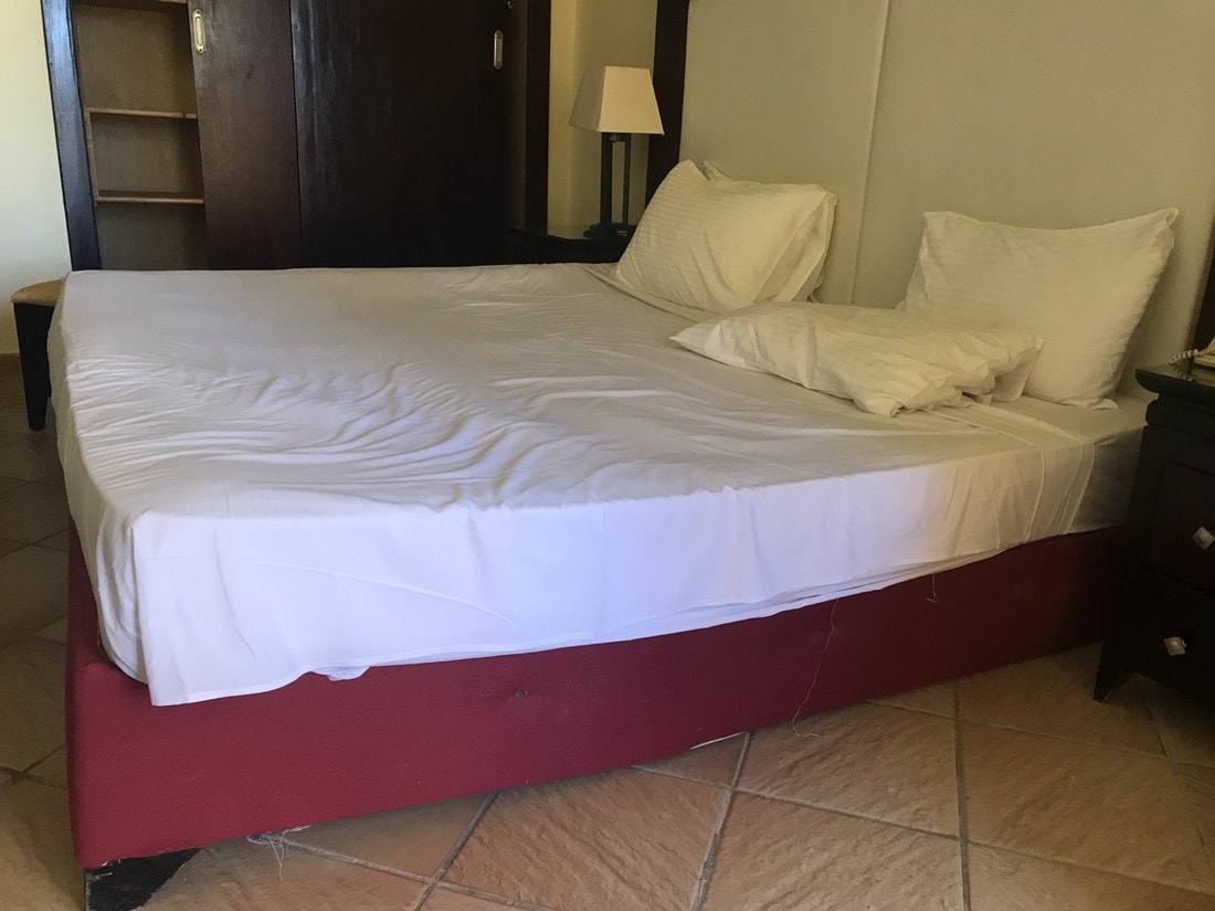 По прилету в отеле туристов поселили в номер, где, как они посчитали, была полная антисанитария. Они потребовали их переселить, им предложили замену. Но и во втором номере туристы заметили то, с чем не хотели соседствовать: пыль, странные пятна, вмятины на матрасе, разбросанные подушки. Пока ждали решения вопроса, им предложили поесть в столовой отеля. Анастасия говорит, что еда была тоже странной для пятизвездочного отеля.