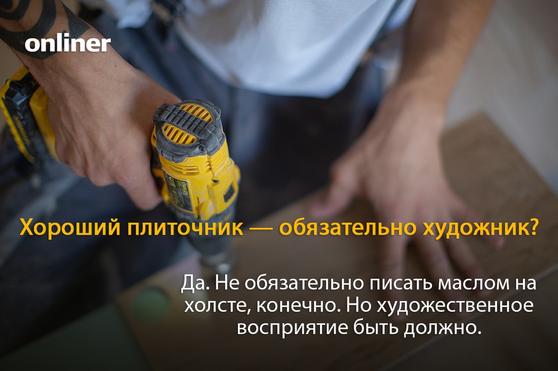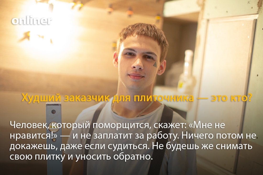 — Я родом из Витебска. Закончил там школу, а потом — Витебский государственный технический колледж по специальностям «техник-строитель», «облицовщик плитки», «каменщик», «штукатур» и «плотник». Почти два года отработал мастером производственного обучения, показывал студентам что да как. А теперь переехал в Минск, работаю на себя. Все полученные знания и опыт передал, как говорится, и со свободной душой пошел зарабатывать денежки (улыбается. — Прим. Onliner).